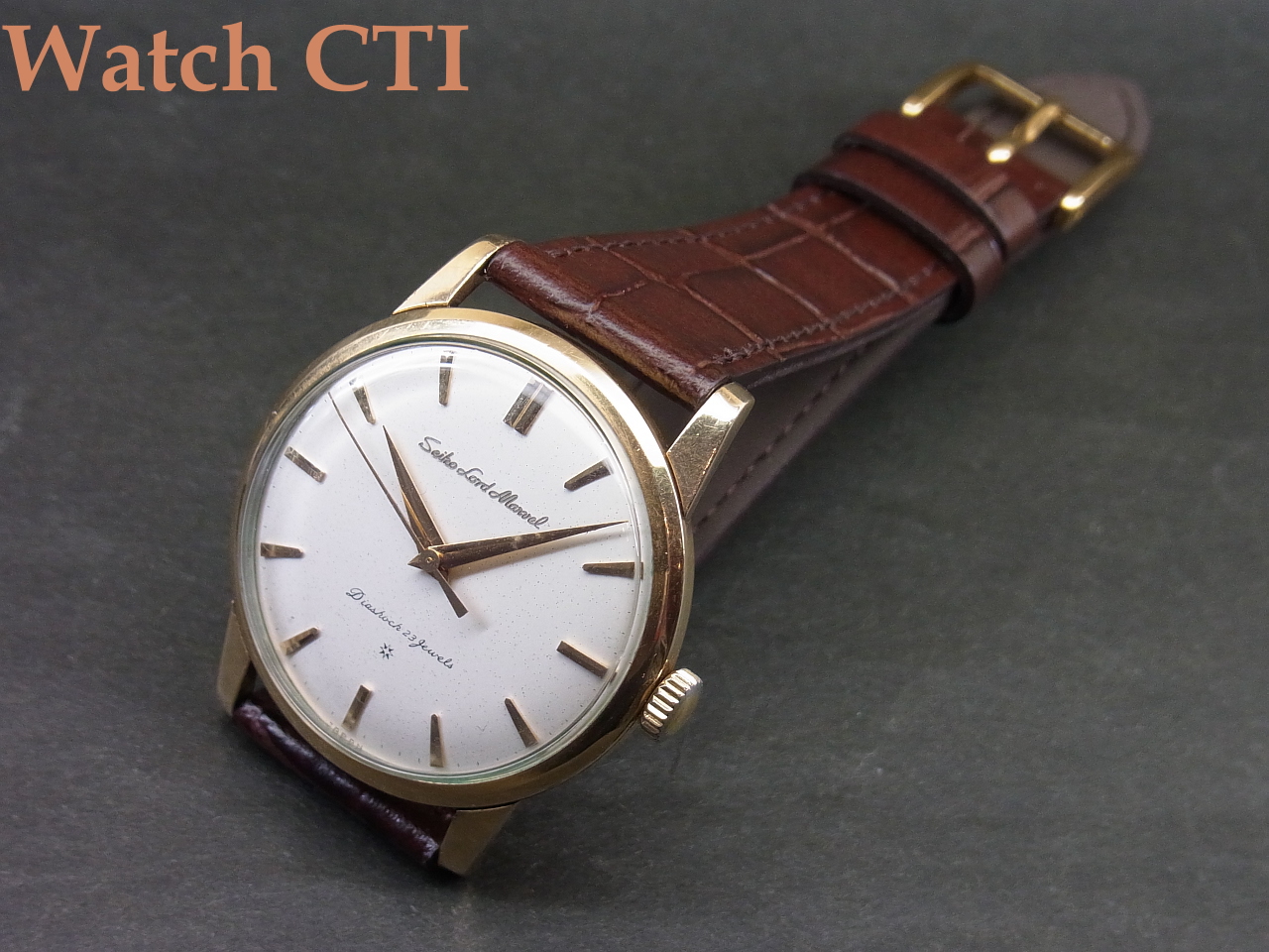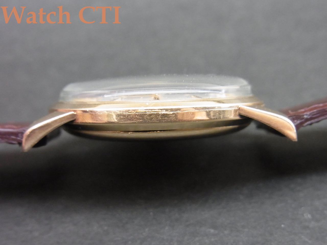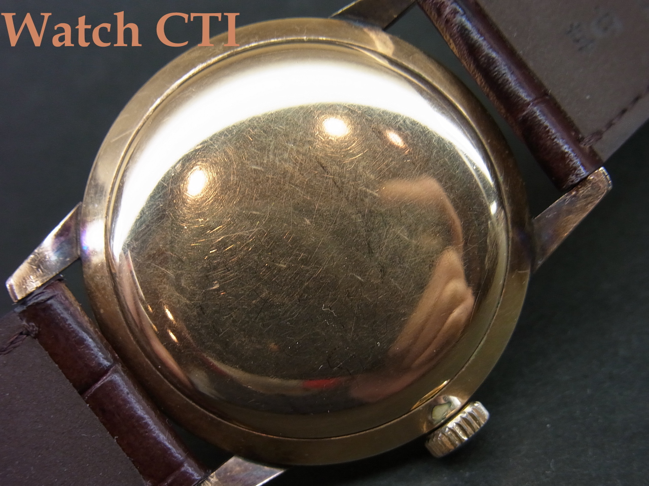 さて、現品は形状ほぼ”はまぐり”状なのですが、J14039のラグが先端までストレートなのと比して横から見た形状が、先太りの湾曲形状をしており、明らかにJ14039はまぐりケースとは違います….過去にも何度かREF無しの総金張りロードマーベルに遭遇しておりますので、製品として販売されたもので間違いないと思いますが…..そしてこのREF.なしケースに搭載される文字板のインデックは、Sマーク付最初期ロードマーベルと同様にくさび型でその後のストレートバーとはちょっと違う、とっても趣のあるインデックスなのです…..愉しいです!