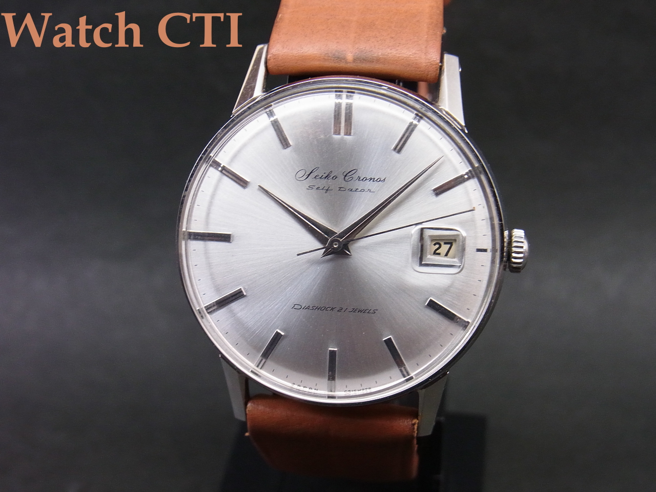 今、ヴィンテージ品としての評価は「使い込まれていない品」という点で高評価が付くのであり、売れ残っていた時計店では棚卸されて以来長い年月を経た厄介者でした…..当然「経年変化」がでています。中には、棚卸後にパーツを取られてドナーになってしまった個体だって出てきます。そういう点でデッドストック品にはエンドユーザーに実用使用された痕跡はなくとも棚卸以降の時計店での現在までの保管状況次第ではユーズド品にも劣る品だって実際にはございます。ただし、私たちが仕入れるのはそんな中でもできる限り優良なオリジナル状態を保っているものを選択してはいるのです。が、ほぼすべての個体で何らかの経年変化痕跡や手を入れた痕跡が見られますので、工場出荷直後の「未使用新品」とは区別してお考え下さい。宜しくお願い致します。