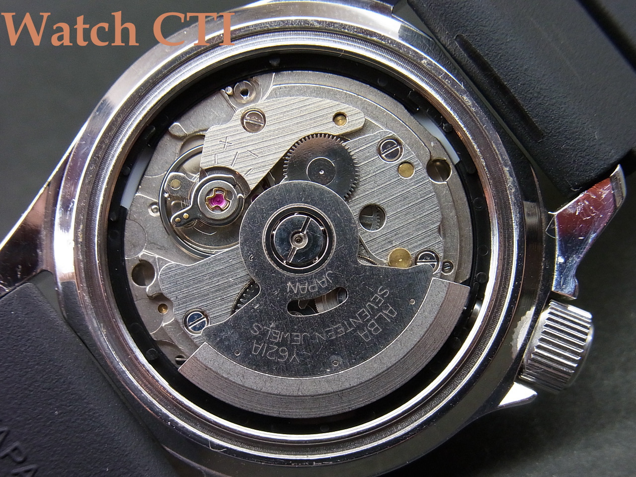 まあ、海外仕様はレディース自動巻を搭載しているご都合機種なので、こちらのアクアギアの方が12型メンズサイズ機械搭載という点では「正当派」でしょうね(笑)、しかし、このY621Aという機械ですが、、ベースは70あたりなんでしょうか….現在の廉価機種NH25とも似てますね~