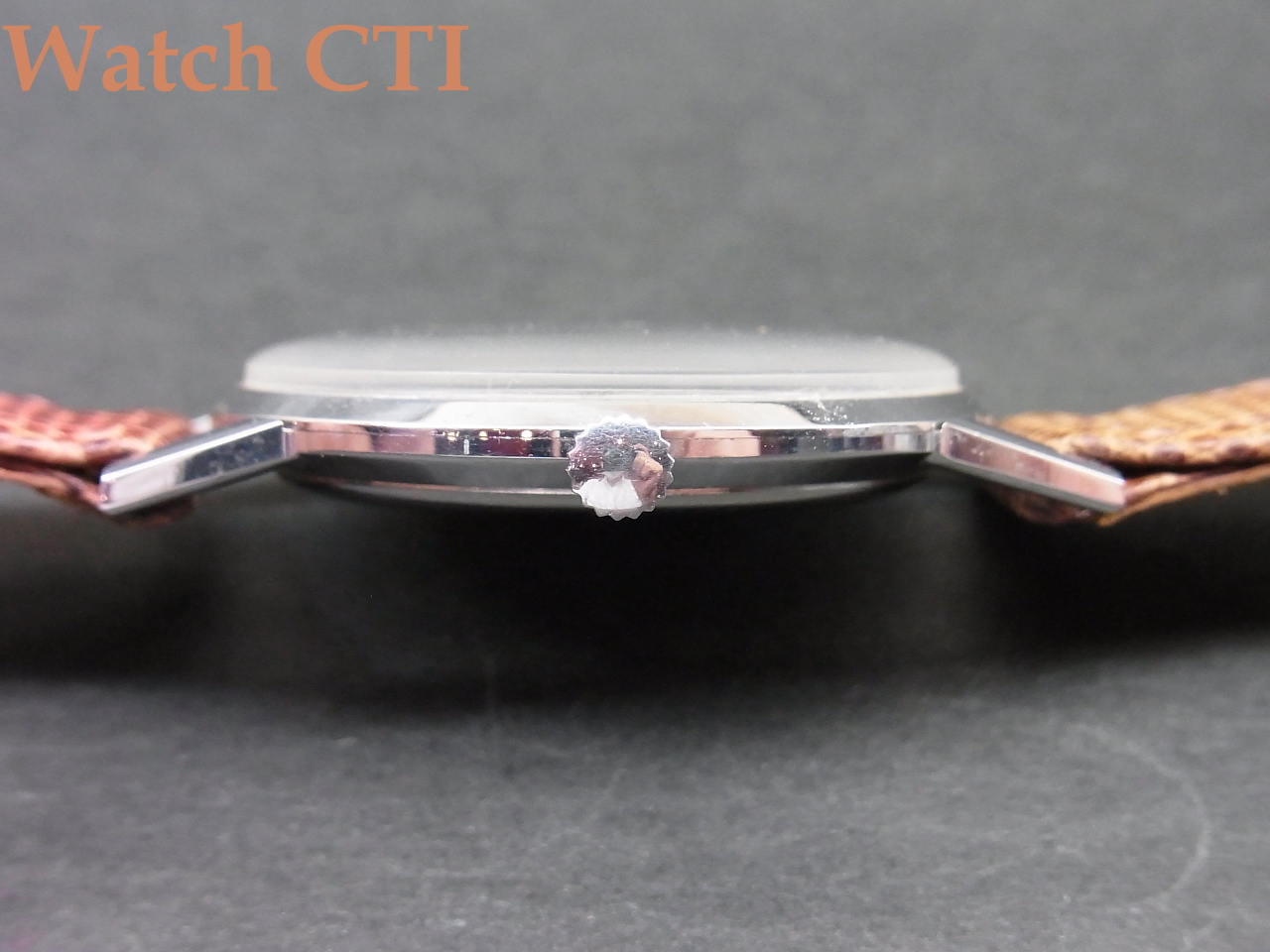 今、ヴィンテージ品としての評価は「使い込まれていない品」という点で高評価が付くのであり、売れ残っていた時計店では棚卸されて以来長い年月を経た厄介者でした…..当然「経年変化」がでています。中には、棚卸後にパーツを取られてドナーになってしまった個体だって出てきます。そういう点でデッドストック品にはエンドユーザーに実用使用された痕跡はなくとも棚卸以降の時計店での現在までの保管状況次第ではユーズド品にも劣る品だって実際にはございます。ただし、私たちが仕入れるのはそんな中でもできる限り優良なオリジナル状態を保っているものを選択してはいるのです。が、ほぼすべての個体で何らかの経年変化痕跡や手を入れた痕跡が見られますので、工場出荷直後の「未使用新品」とは区別してお考え下さい。宜しくお願い致します。