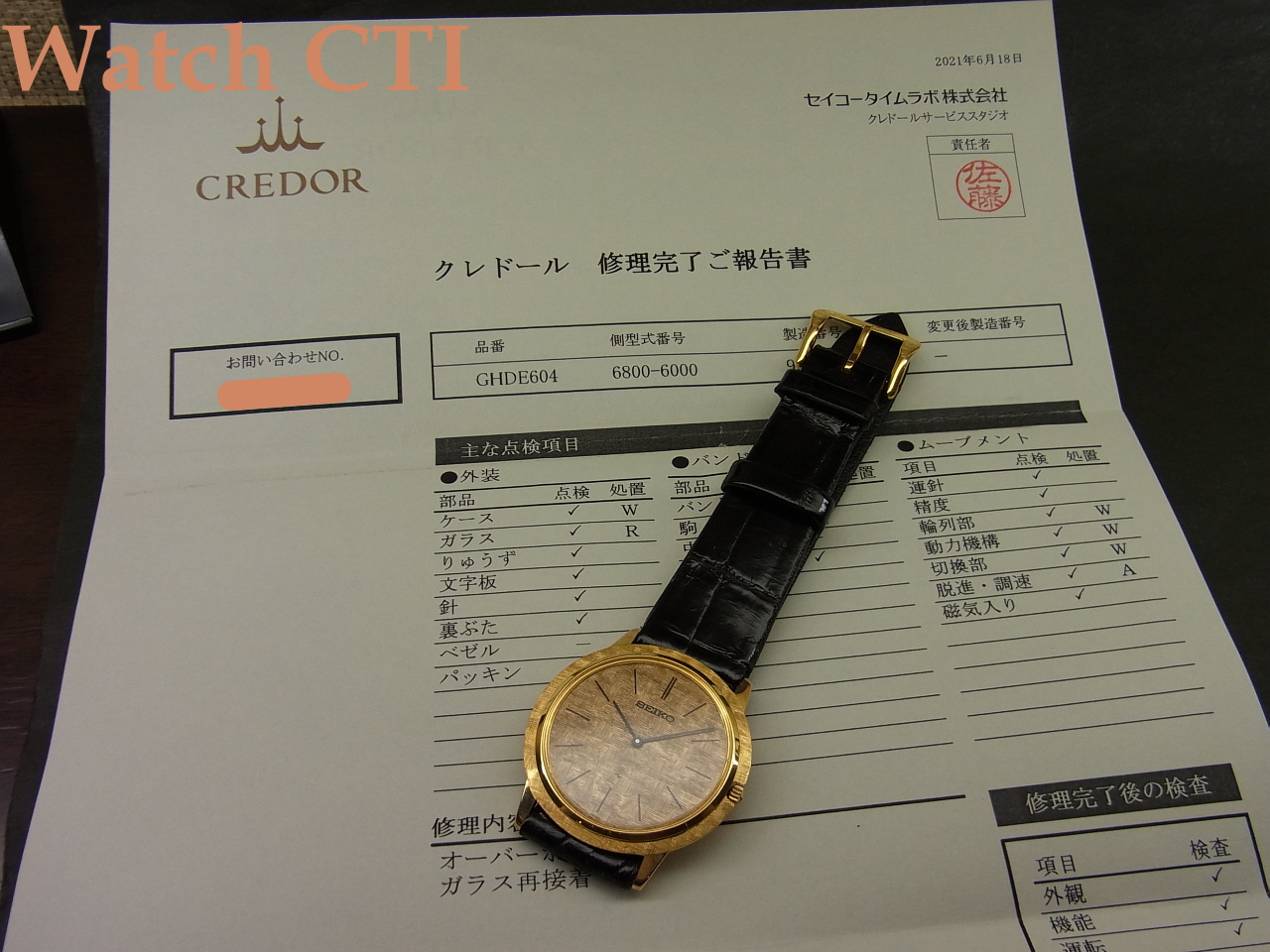 We will change the Crocodile, Lizard, and other Leather Straps against Washington Treaty fitted on this to the Calf Leather strap. It is prohibited to export the crocodile and some other leather items without CERTIFICATE of ORIGIN by the Washington Treaty. The leather straps sold in JP domestic market usually does not have the CERTIFICATE.
