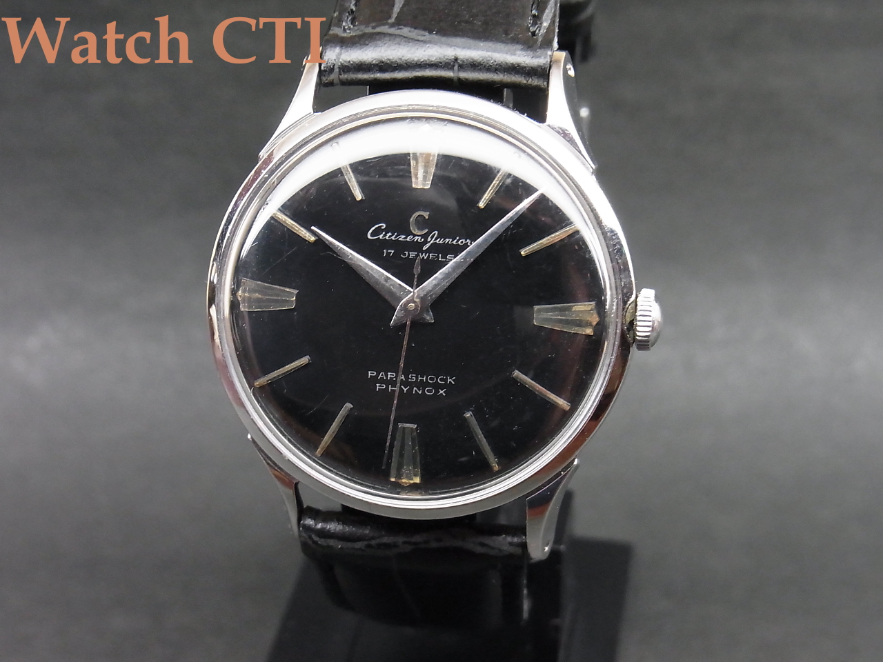 [K3774] シチズン ジュニア15石 ”ラージケース黒文字盤” [販売済]