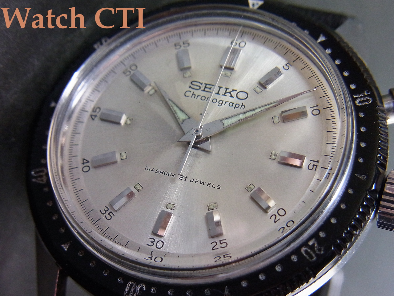 プラスチックベゼルはエッジがやや丸く減りが出ていますがもっと酷いのをよく目にしますのでまずまずでしょうか…機械はクロノを含め好調です。なにより風防がジェネリック新品で、今や結構入手しづらくなりましたよ!
