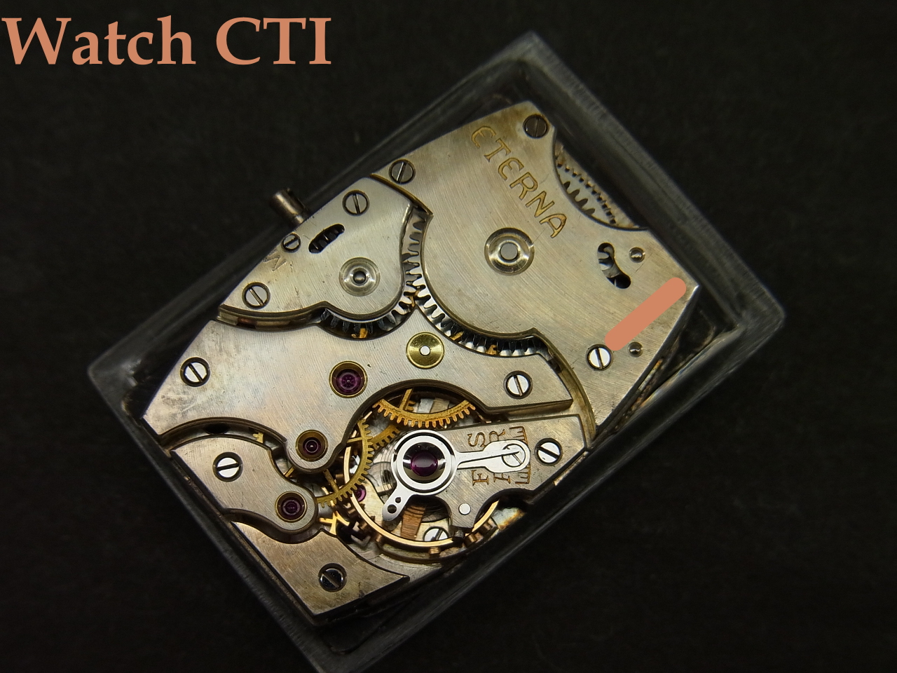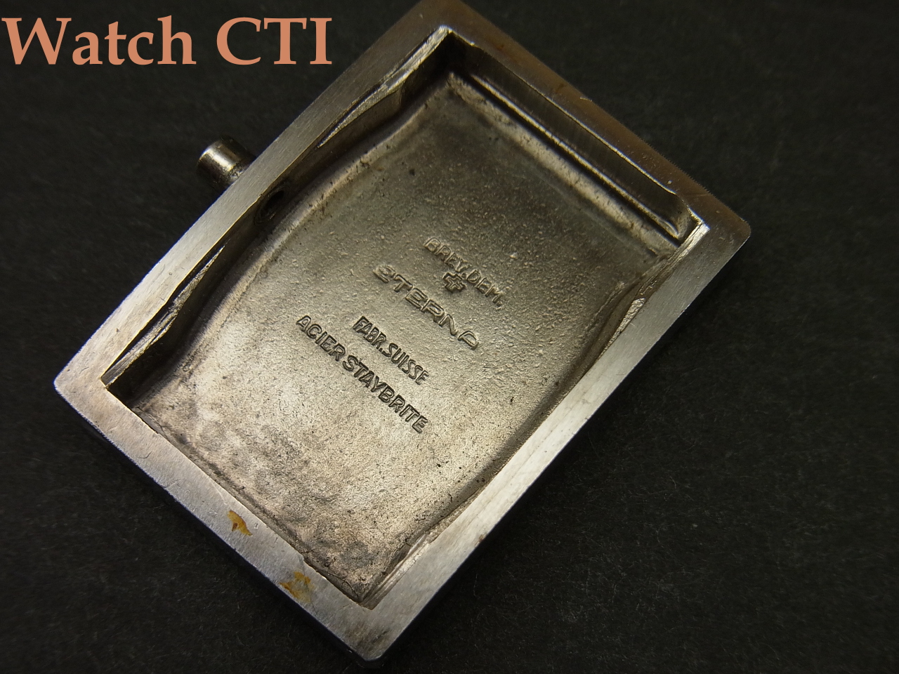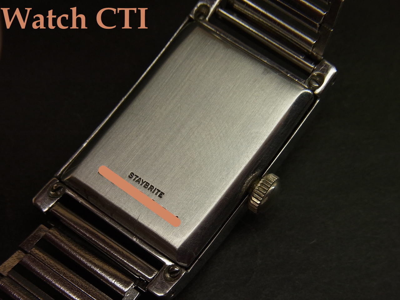 ☆ダイヤルがやられやすい角型ケース、現品は防水を意識した4つビス(イモネジ)式の恩恵もあったのでしょうが、ギルト仕上げのミラーブラックダイヤルもそこに乗る夜光インデックスとペンシル2針も….してケース自体も、そのシャープさなどから、相当に保存状態の良い逸品と言えますね!