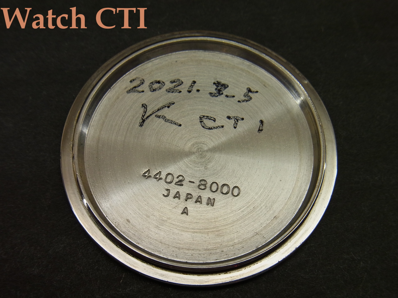セイコー製の防水タイプではあるのですが、本来の4402KS用はSWの表示が入る面がフラット形状です。現品は湾曲したタイプで他の手巻防水系モデル用のリューズとなります。