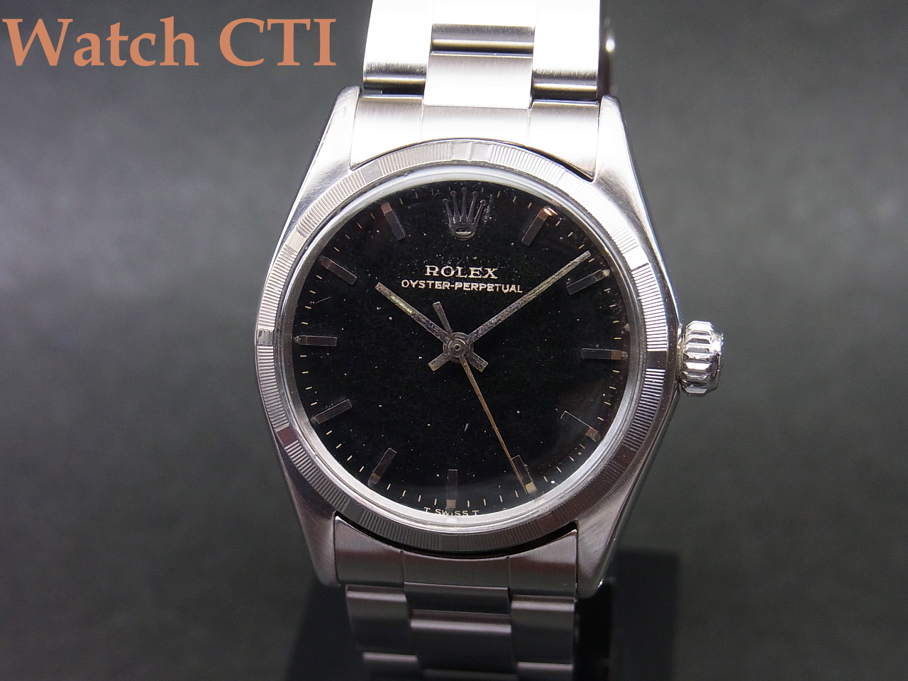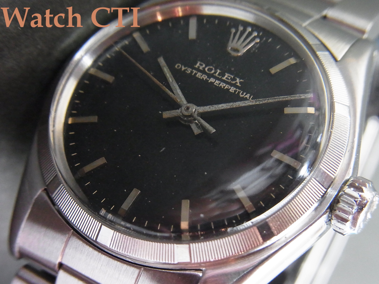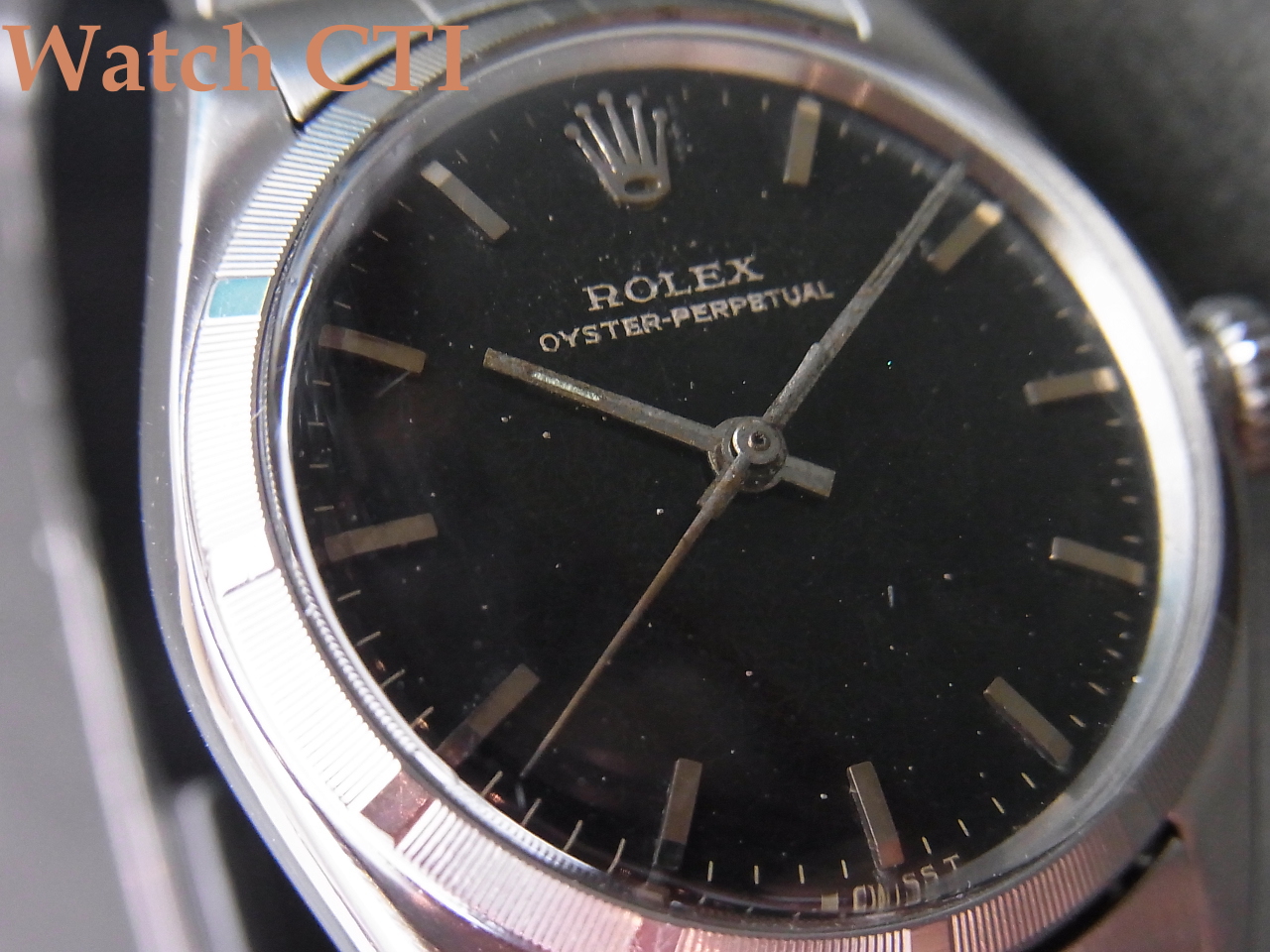 *そのダイヤル、表面的経年変化でプチプチやらくすみやら出てきている状態ですが、これはもうUSEDギルトブラックとしては標準的かと思われます…..。ケースはポリッシュが入っています。ブレスに後年のヘビーオイスターが装着されております!