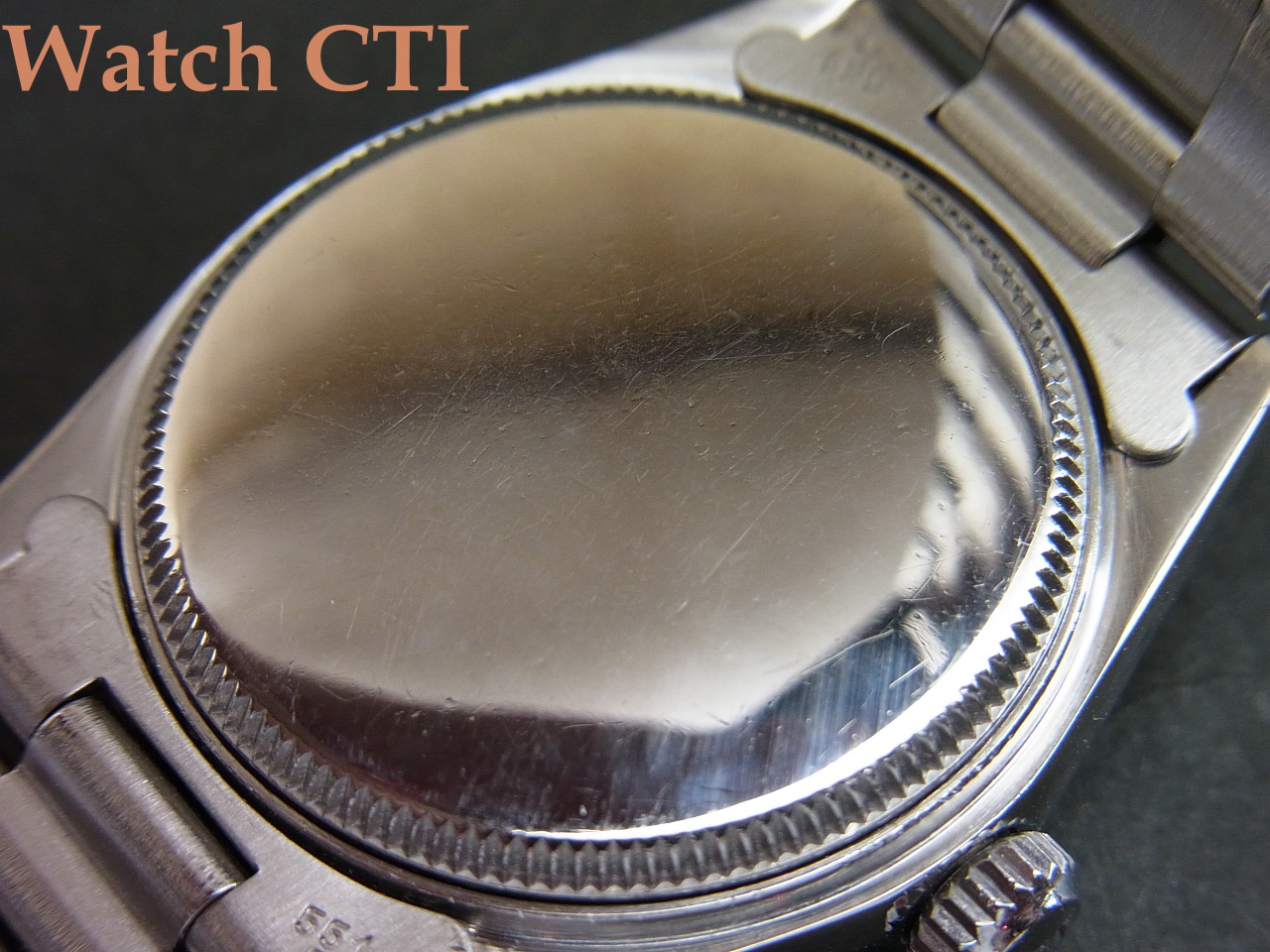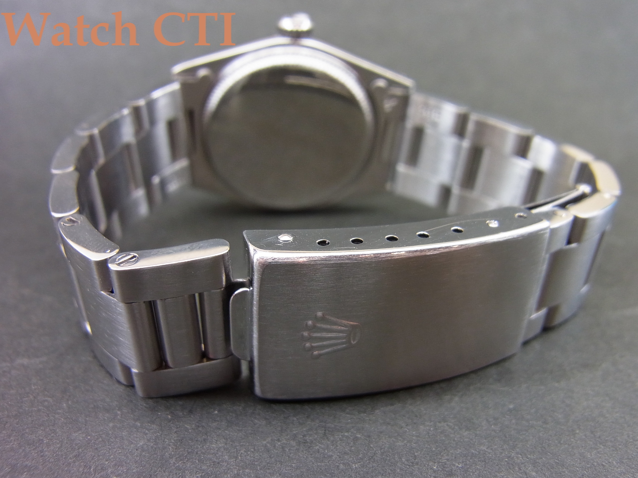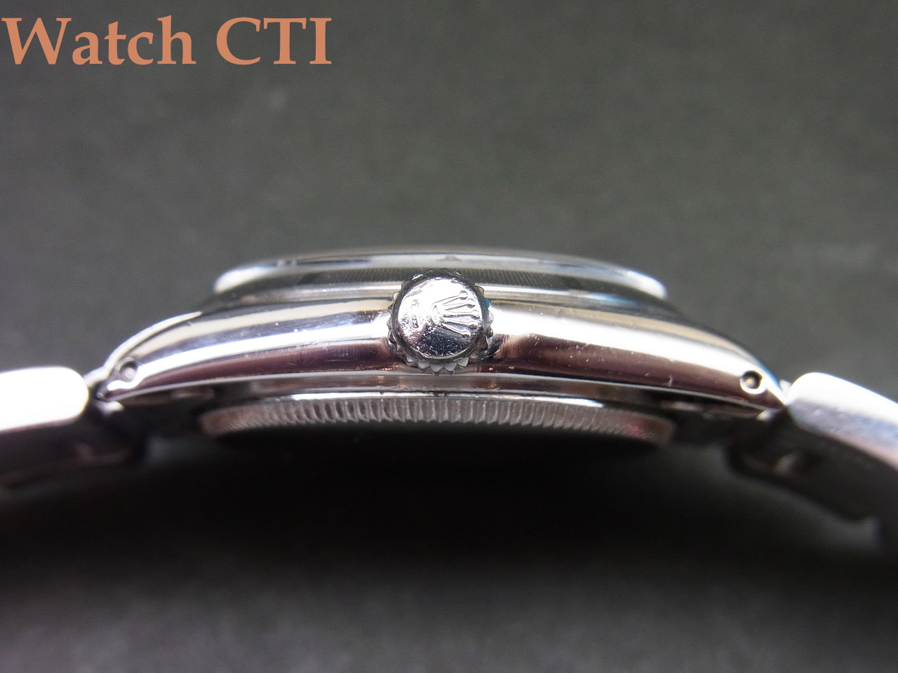 *そのダイヤル、表面的経年変化でプチプチやらくすみやら出てきている状態ですが、これはもうUSEDギルトブラックとしては標準的かと思われます…..。ケースはポリッシュが入っています。ブレスに後年のヘビーオイスターが装着されております!