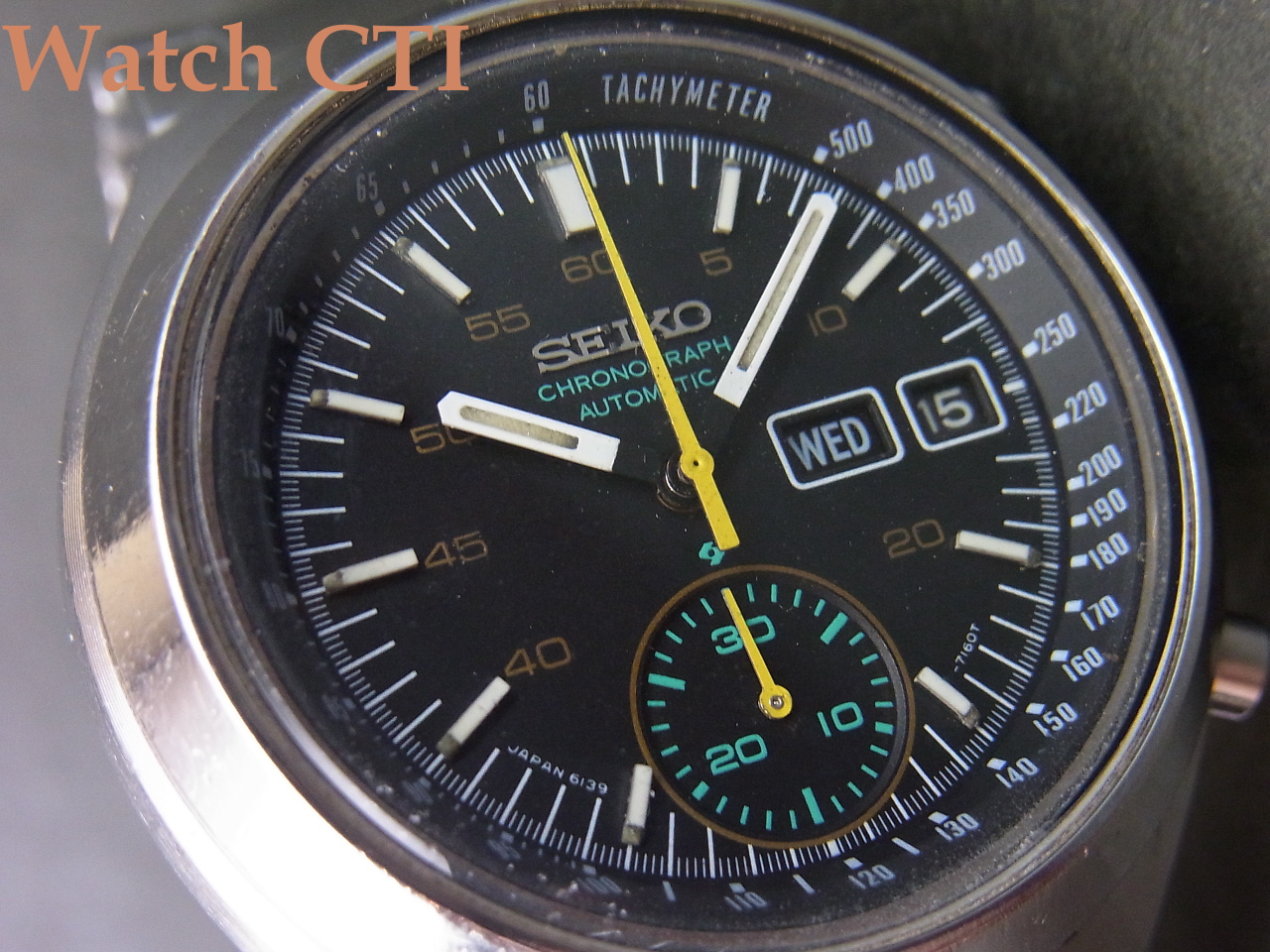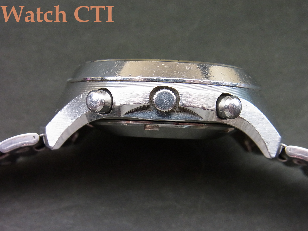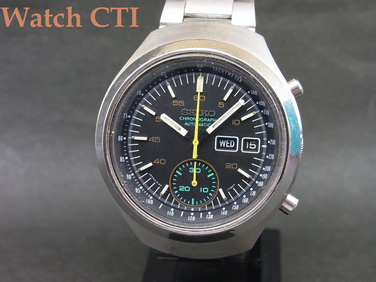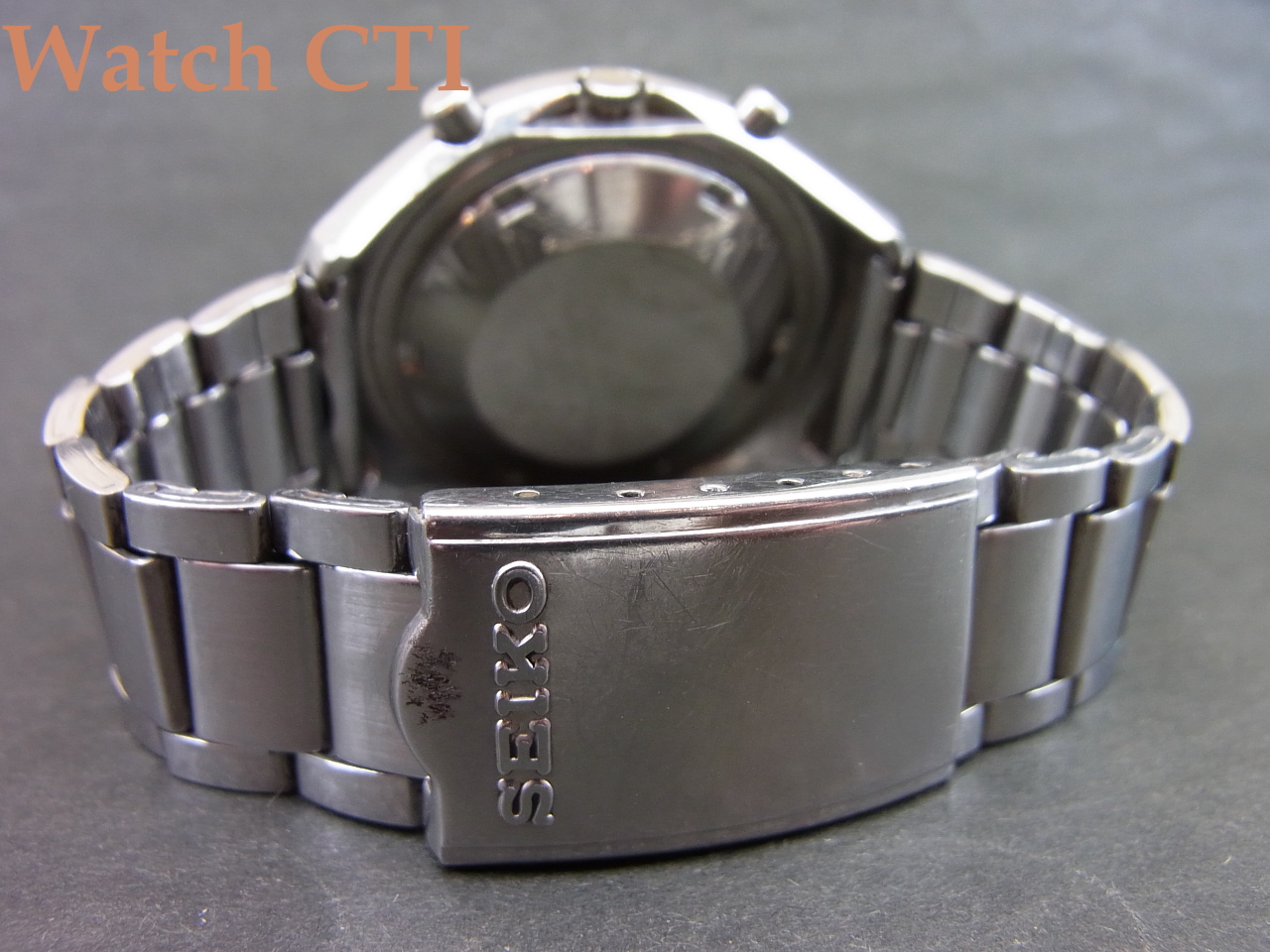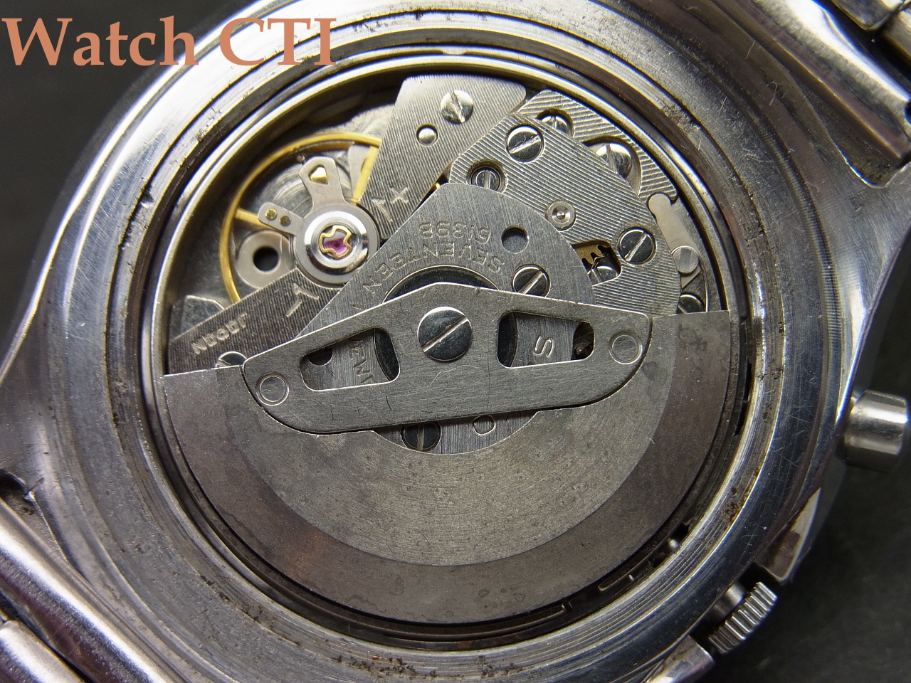 付属のブレスレットはSEIKOの当時の品で良く似合っていますが、このモデルに採用されていたタイプではないようです..(海外仕様はブレス違いも多く純正ブレスの特定が難しい個体が結構あります…海外のカタログに付いていたブレスと実際販売した際のブレスが違う例もままあります…)