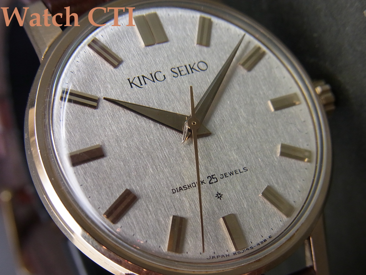 ☆この個体は特に機械の減りがほとんど無いようで姿勢差も極く少なく、歪みの出やすい総金張りケースも素直(メダリオンの美しいこと!)、細い縦目の入った文字板はSEIKO銘プリントの周りに少々くすみが見られる程度でこちらも優秀です!!