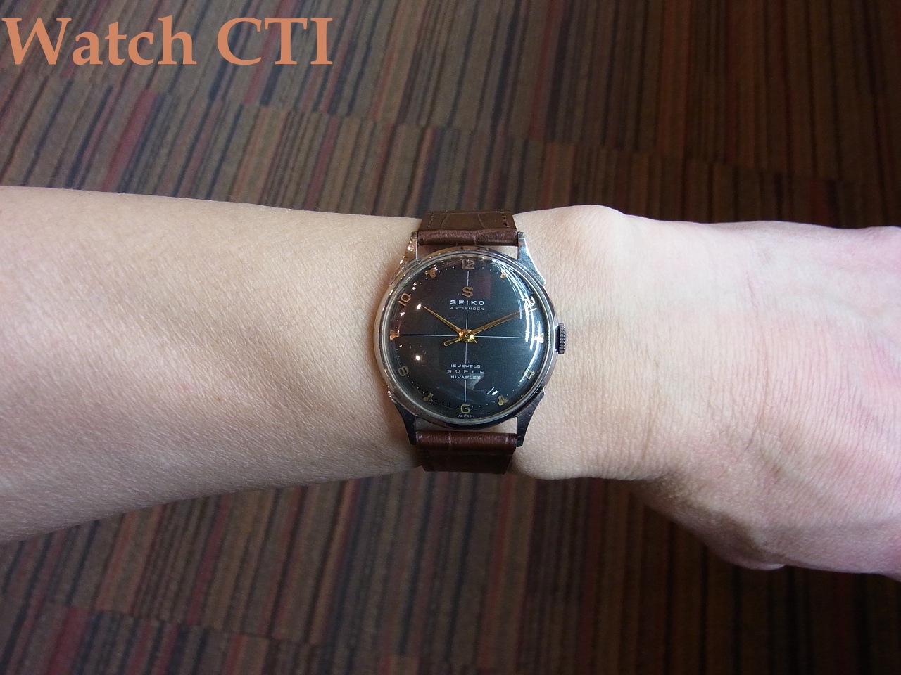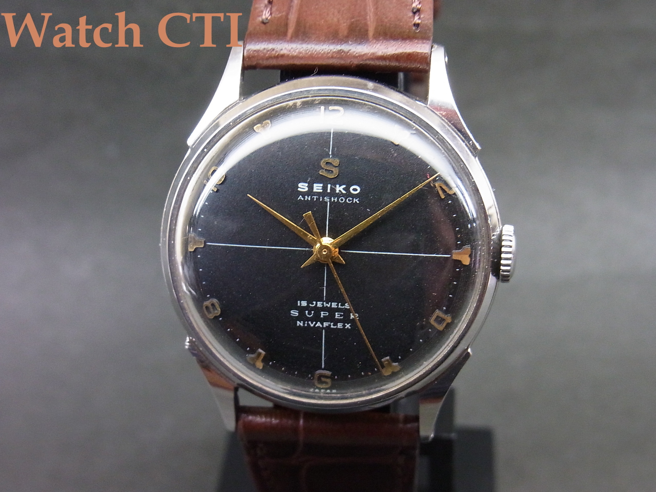 [K4045] SEIKO スーパー15石 ”黒ルーレット飛びアラビア” [販売済]