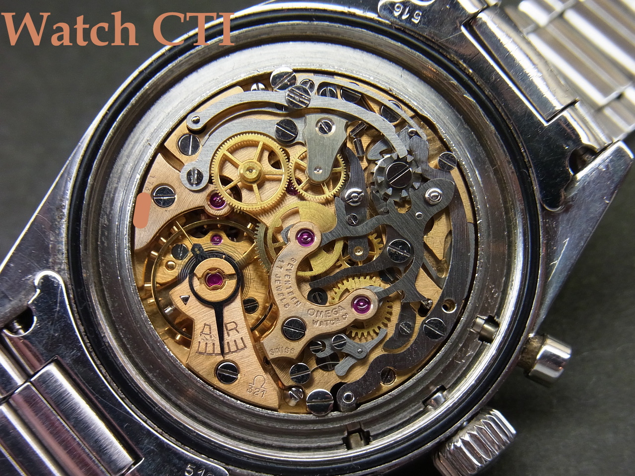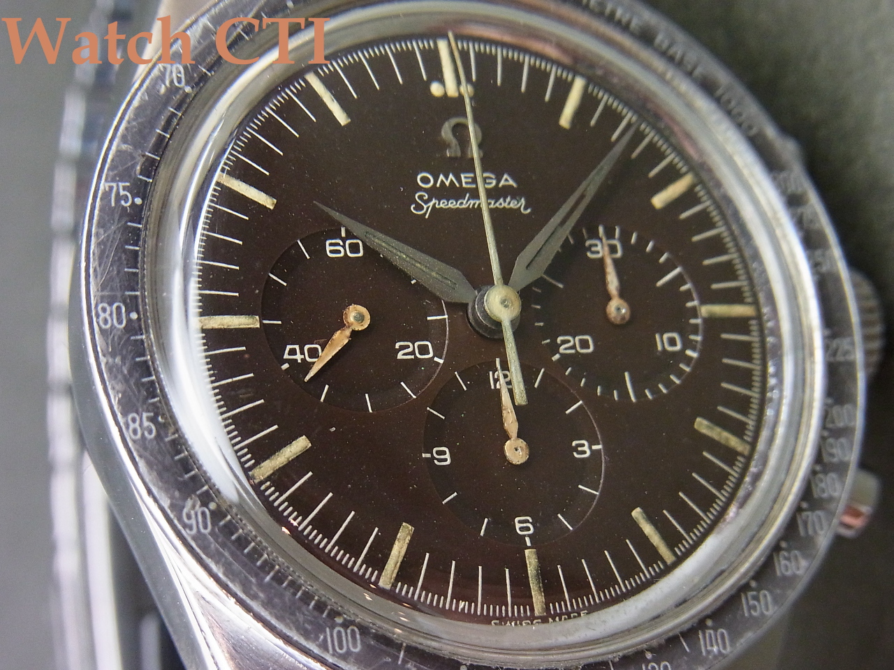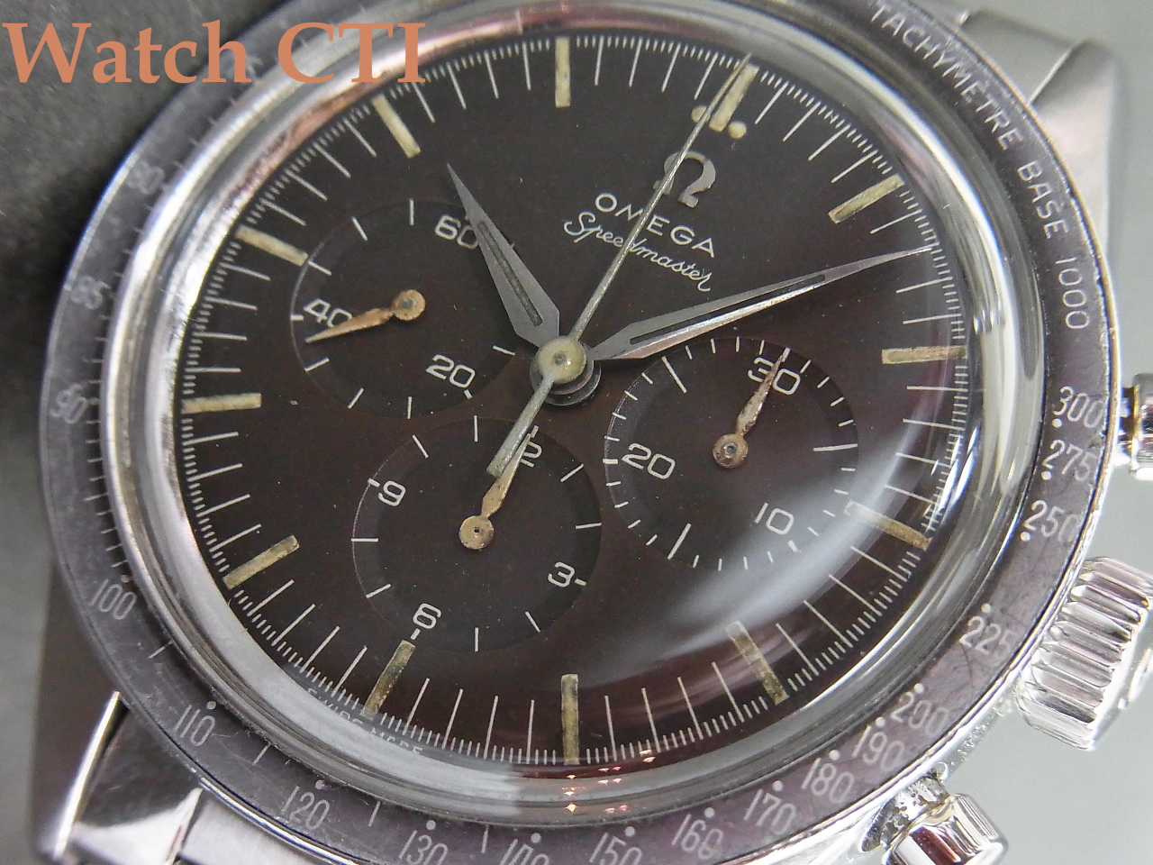このころまでのオリジナルは1000BASEのタキメーターが装備されていましたが、のちにオメガにメンテナンスで戻ってくる都度、荒れのある個体はその後の標準500BASEに交換していたようで、1000BASEが残っている個体は非常に大変に希少です!
