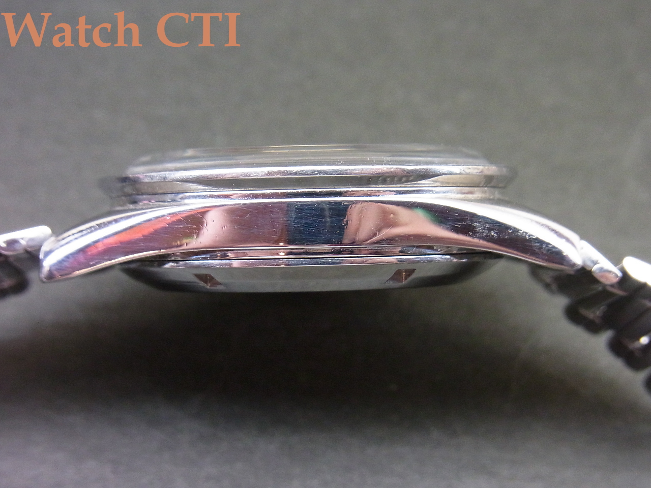 *ケースはハードポリッシュはされておらずほぼそのままのように見えます。ラグの先端の角ばったヶ所なども太さがしっかり残っております。ケースバックの刻印は若干ダルくなってきています。