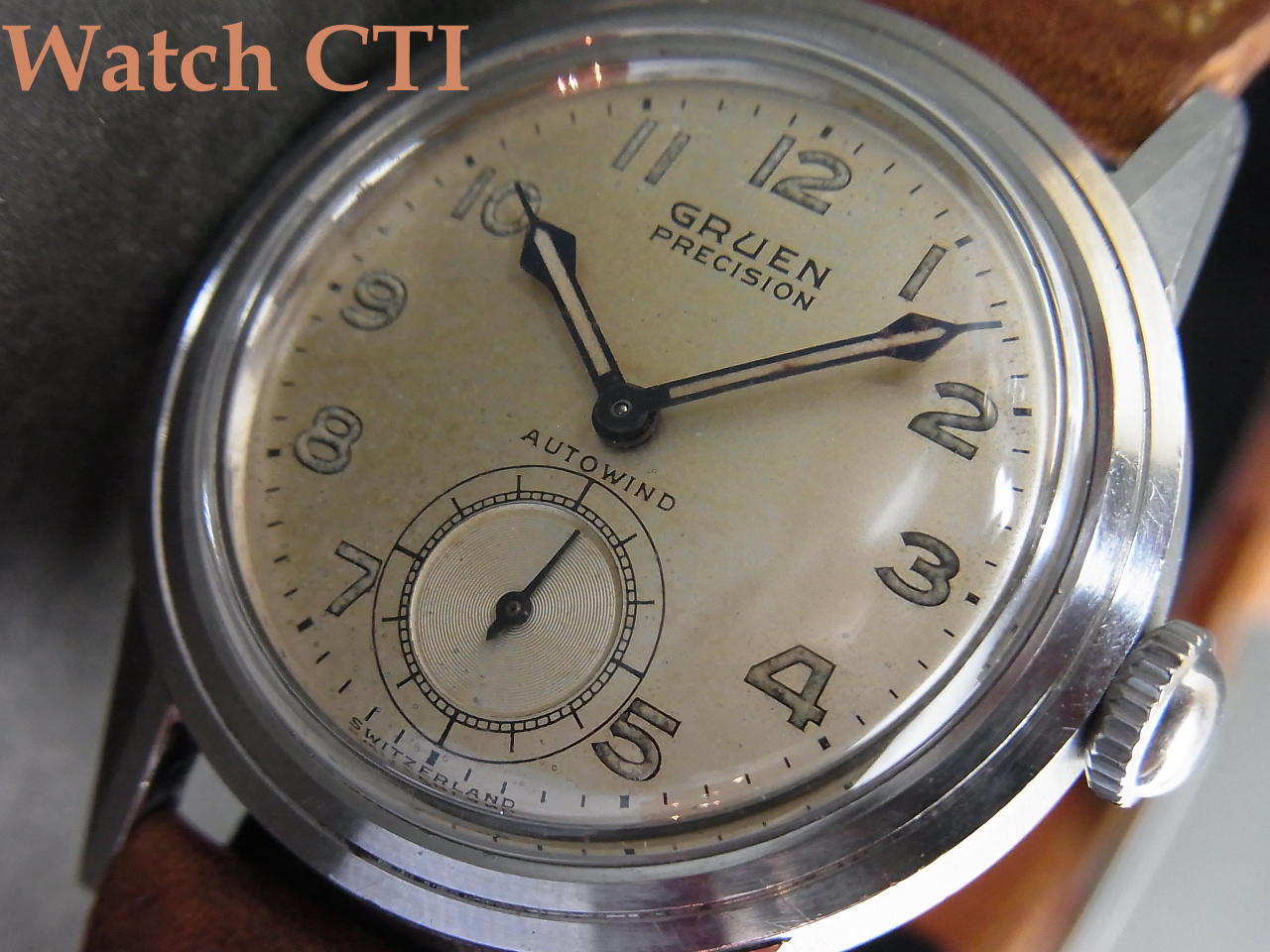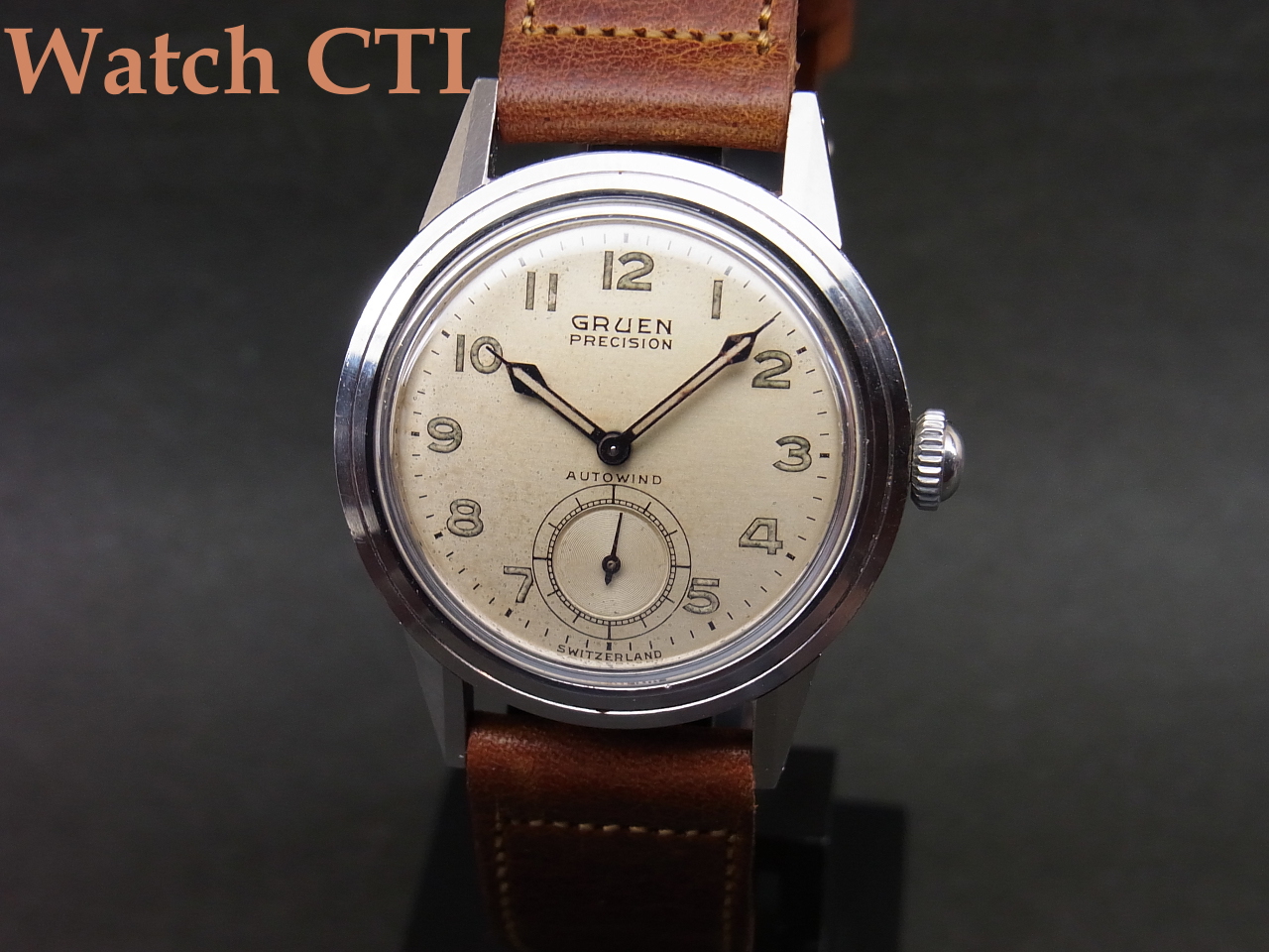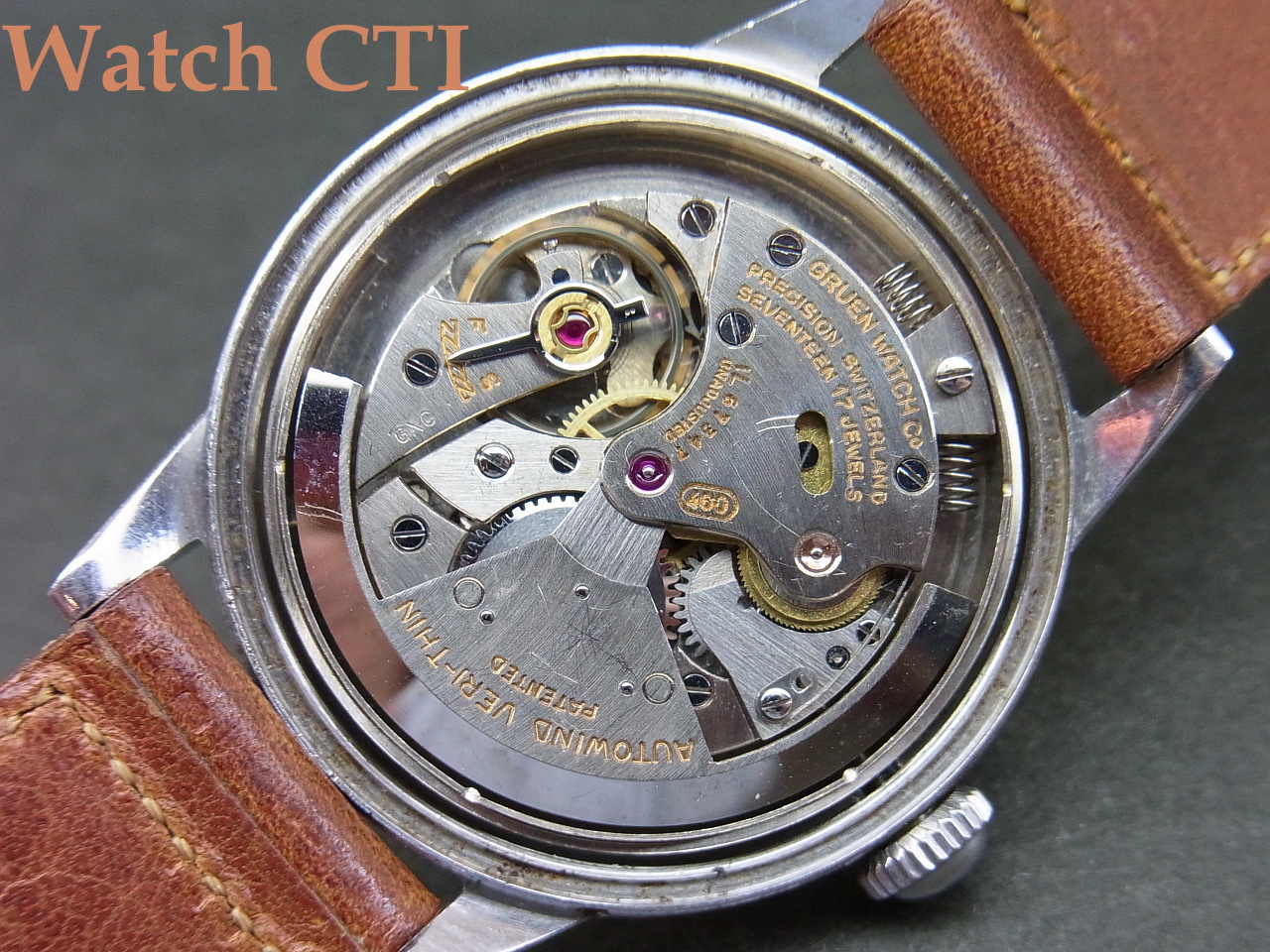ムーブメントは自社製11.5型、17石バンパー(ハーフ)オートマチックCa.460で、グリュエンが手掛けた最初の自動巻となります。