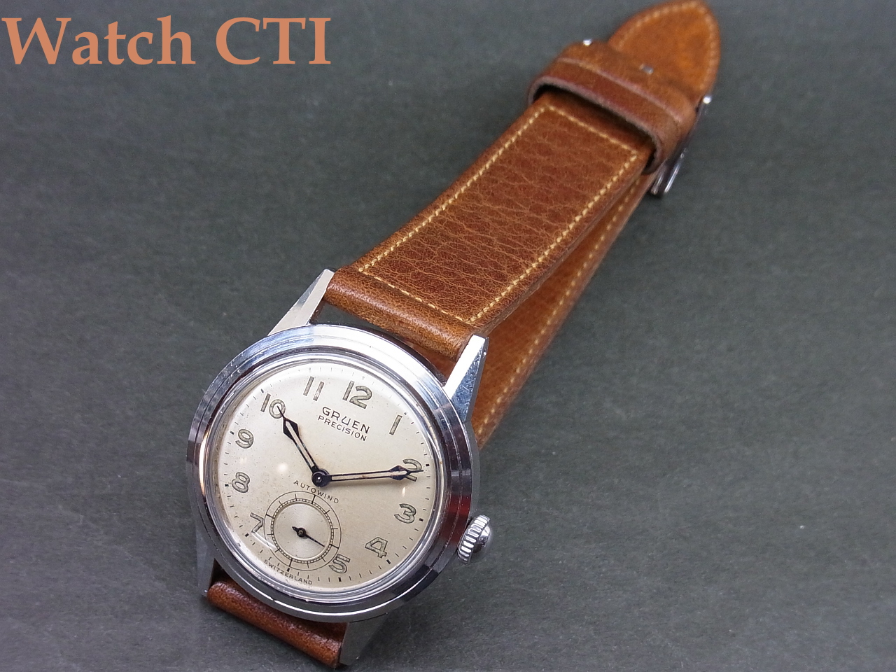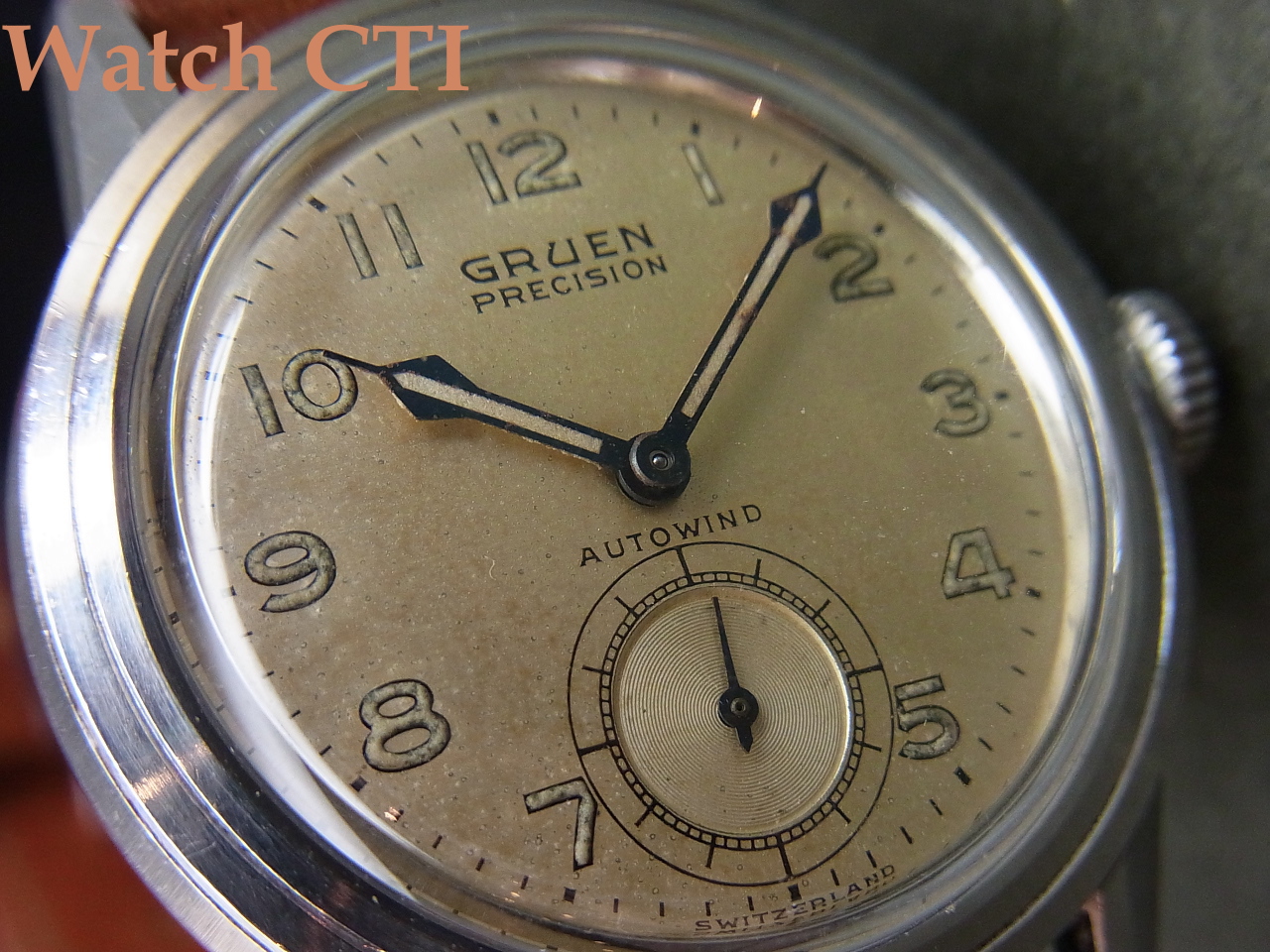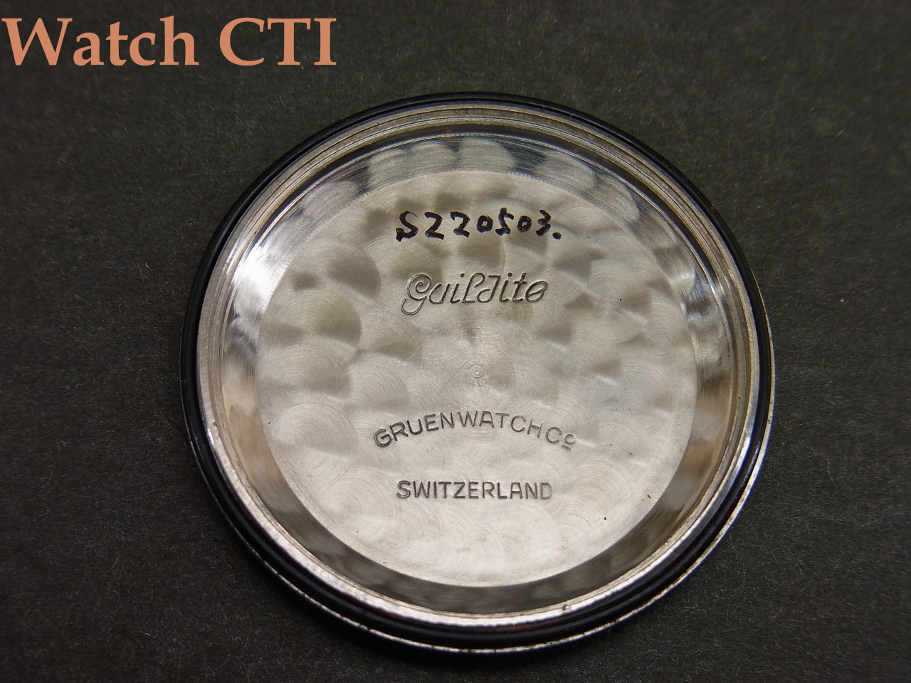 ムーブメントは自社製11.5型、17石バンパー(ハーフ)オートマチックCa.460で、グリュエンが手掛けた最初の自動巻となります。