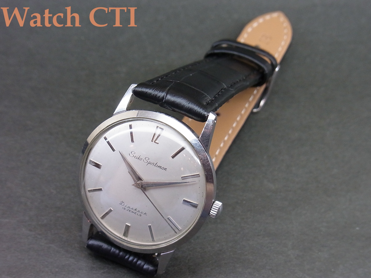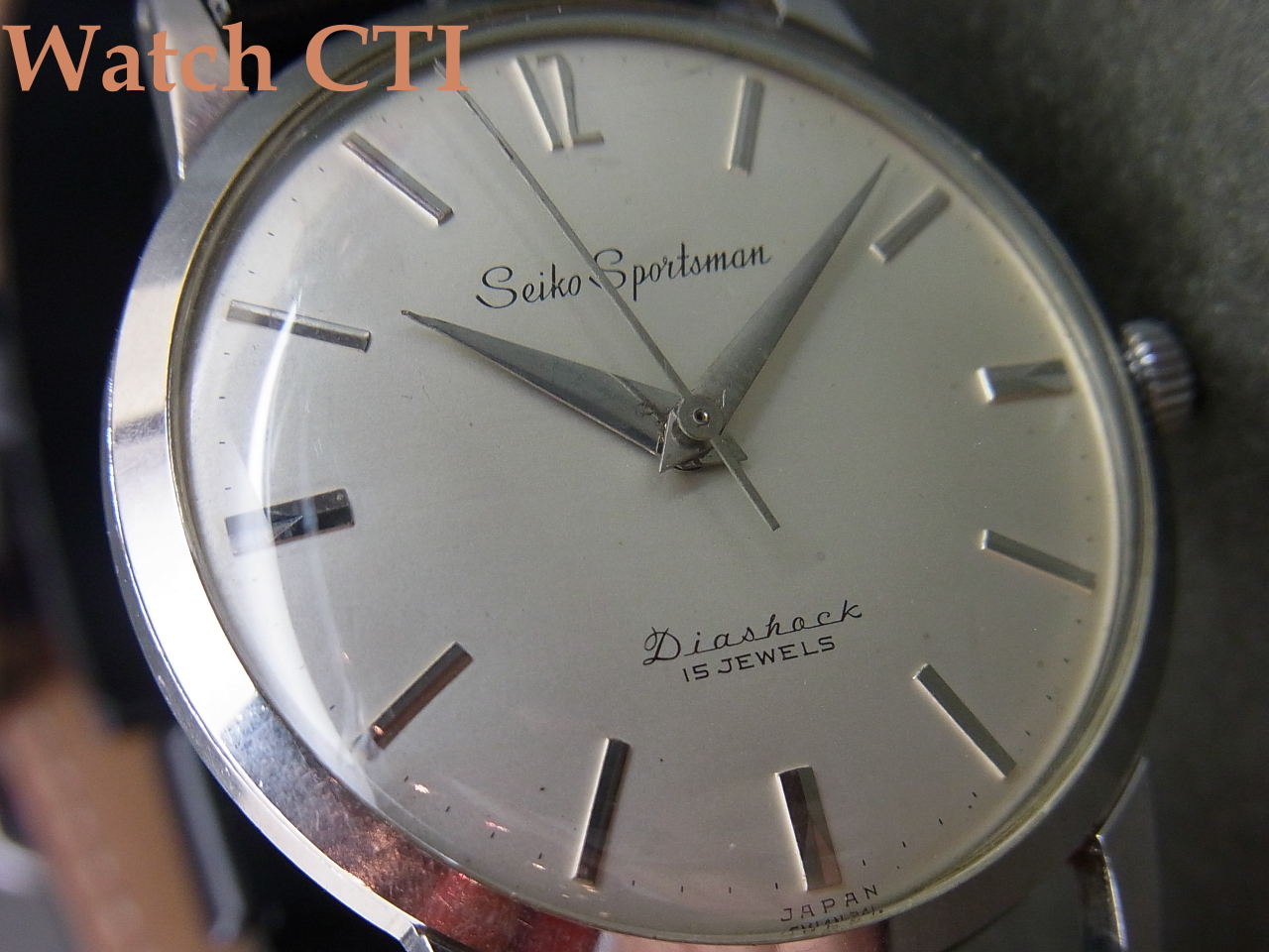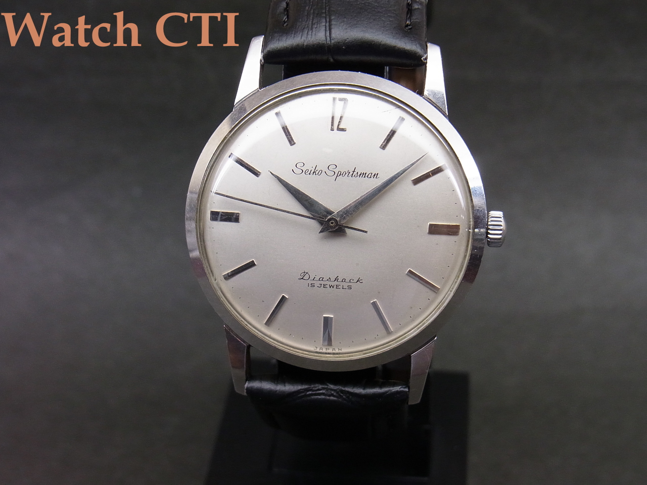 手巻カレンダー無しという「素」の時計に徹した基本モデルともいうべきもので、文字板のデザインで全てが決まるって感がありますが、この個体!良いですね~。インデックスの12時にだけちょっと凝ったレトロなフォントで”12”がアプライドで浮かび上がっております!!たまらないんですよねぇこの感じ!
