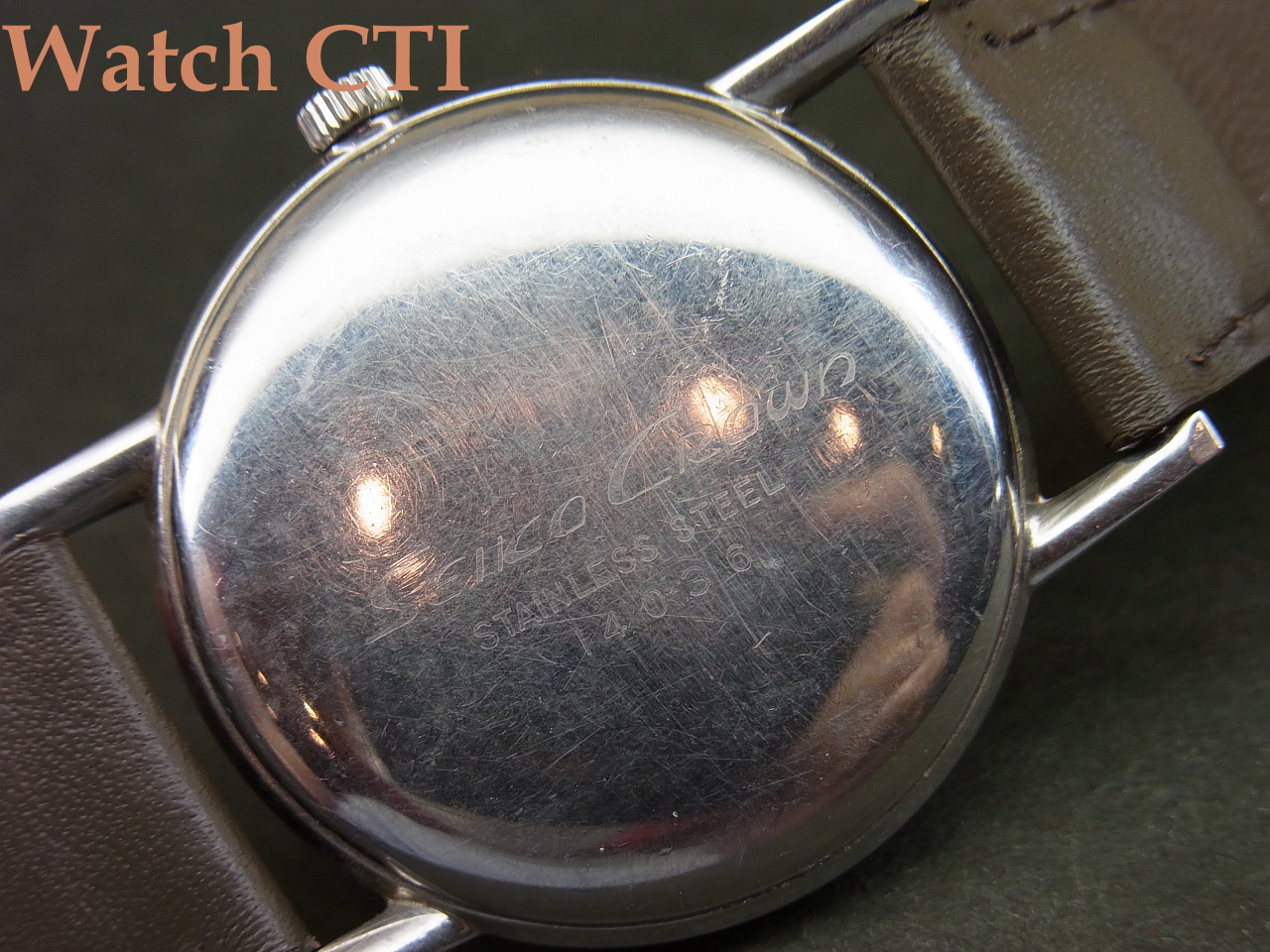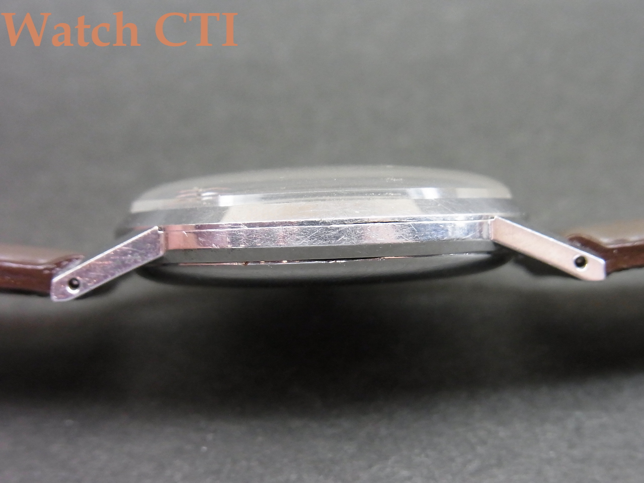 現品、文字板には良い感じにうっすら焼けやらポツポツやらがでており、外装には表面的ヘアライン・擦れがあり、いかにも実用でしっかり使われてきた感があって何とも言えません!ケースに磨きは入っておらずエッジの立ったオリジナルコンディションを保っております!