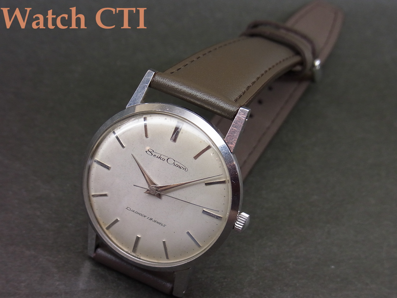 クラウンが新品として腕時計市場で販売されていた期間はそのはじめが昭和34年(1959年)で最終製造はおそらく昭和41年(1966年)頃迄ですので流通市場にその後2-3年は沢山あったかと思いますから1969年頃まではそれなりに新品として入手できたかと推察します。そうです正に高度経済成長時代のど真ん中!!現在のご時世とはまるで違ったのです!活力に溢れ、明日は絶対に今日より伸びて行く時代!