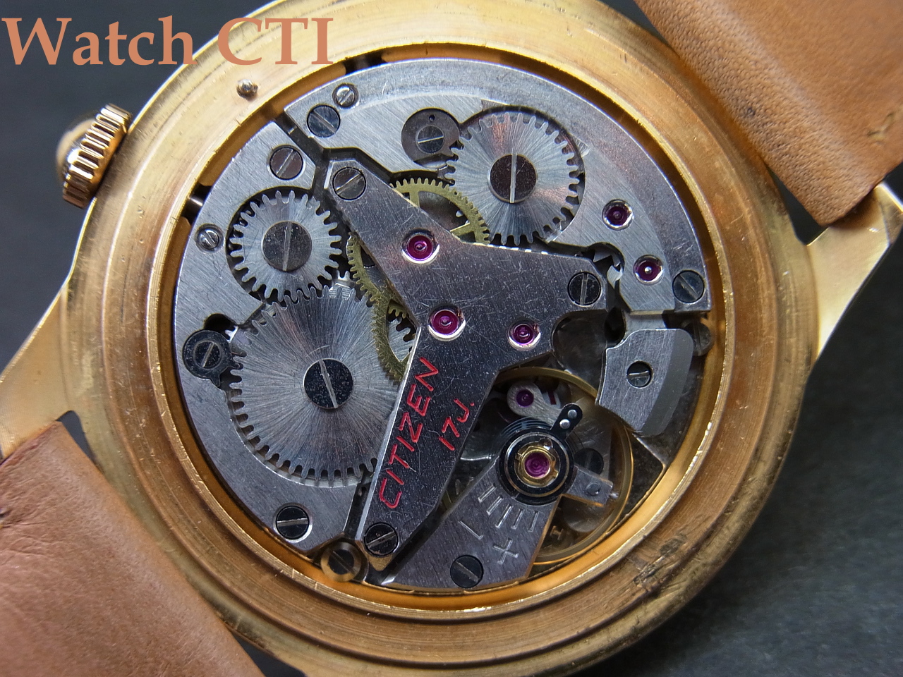なお、革ベルトもCITIZEN(たまに見られるフランス製です)銘が入っておりますが、これは当時付属の物ではないと思いますが、現行品でもなく1970年頃の品かな?と言ったように見受けられます。