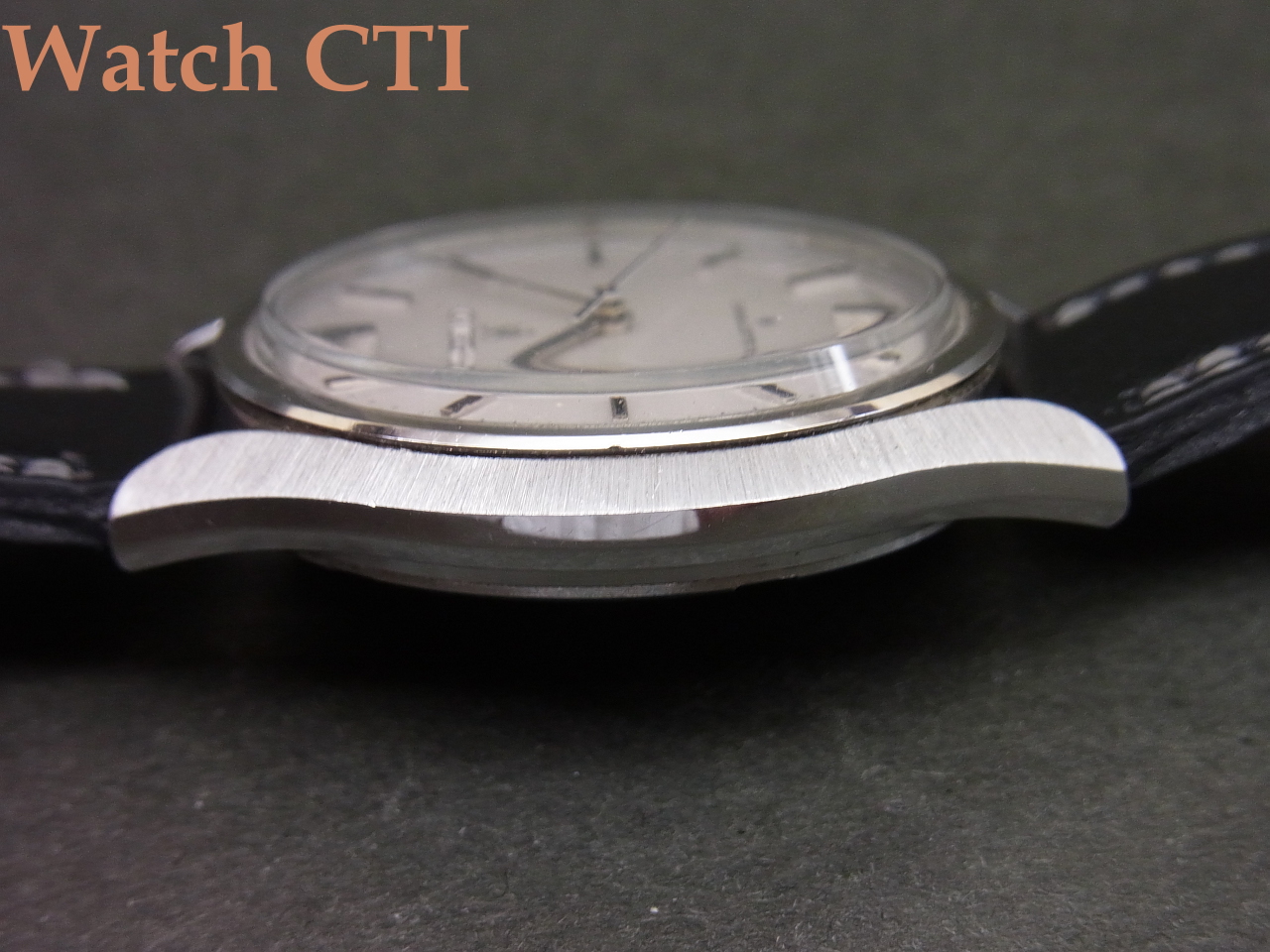 今、ヴィンテージ品としての評価は「使い込まれていない品」という点で高評価が付くのであり、売れ残っていた時計店では棚卸されて以来長い年月を経た厄介者でした…..当然「経年変化」がでています。中には、棚卸後にパーツを取られてドナーになってしまった個体だって出てきます。そういう点でデッドストック品にはエンドユーザーに実用使用された痕跡はなくとも棚卸以降の時計店での現在までの保管状況次第ではユーズド品にも劣る品だって実際にはございます。ただし、私たちが仕入れるのはそんな中でもできる限り優良なオリジナル状態を保っているものを選択してはいるのです。が、ほぼすべての個体で何らかの経年変化痕跡や手を入れた痕跡が見られますので、工場出荷直後の「未使用新品」とは区別してお考え下さい。宜しくお願い致します。