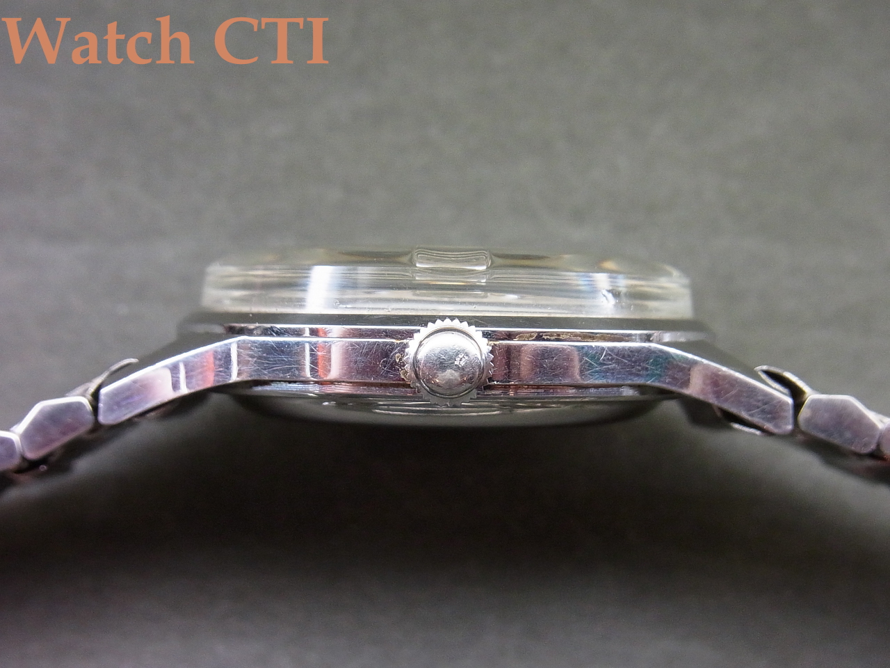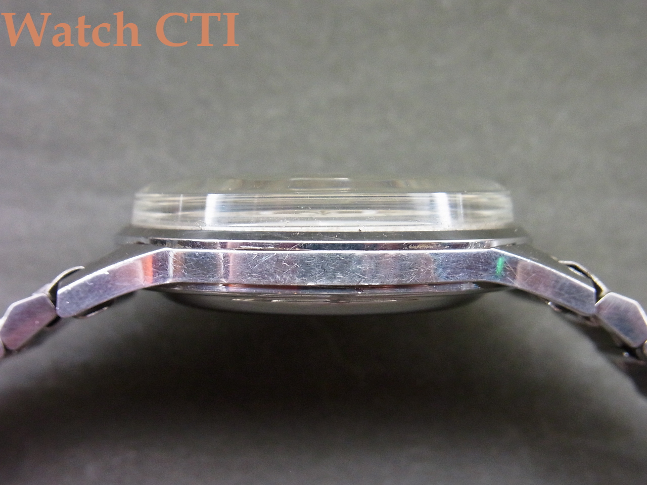 ☆当時の国産ステンレススチールブレスレットの典型タイプなんですが、無垢素材を加工するのは難儀だったのでしょう、スチールの板を折り曲げて継ぐという感じで手作り感溢れる、涙ぐましいブレスなんです!セイコーも初期の防水物に同様なのを装着してました….下請けメーカーはどこだったのかなぁ..バンビさんかな?