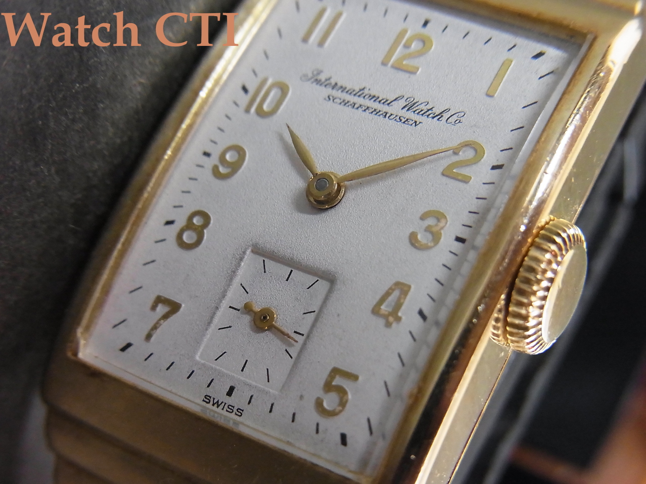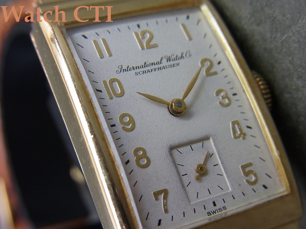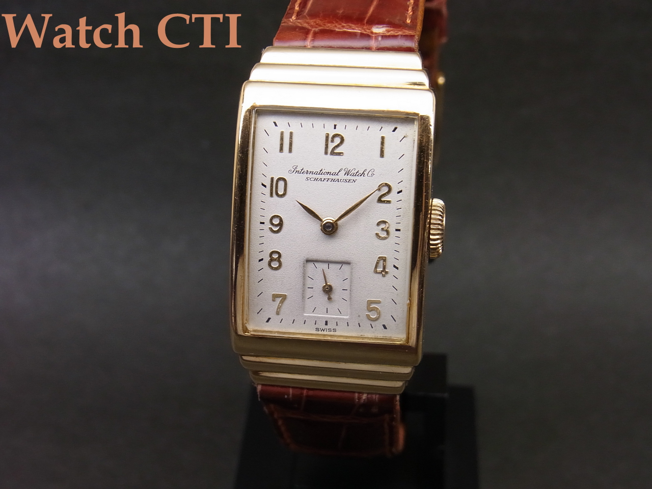 *ダイヤルについて考察致しますと、通常このタイプのレクタンギュラーケースに搭載されるダイヤルは「目玉マーク」でお馴染みのもので、現品のようなIWCのフルレターで無い物を多く見かけると思います。ではこのダイヤルはリダンなのでしょうか?