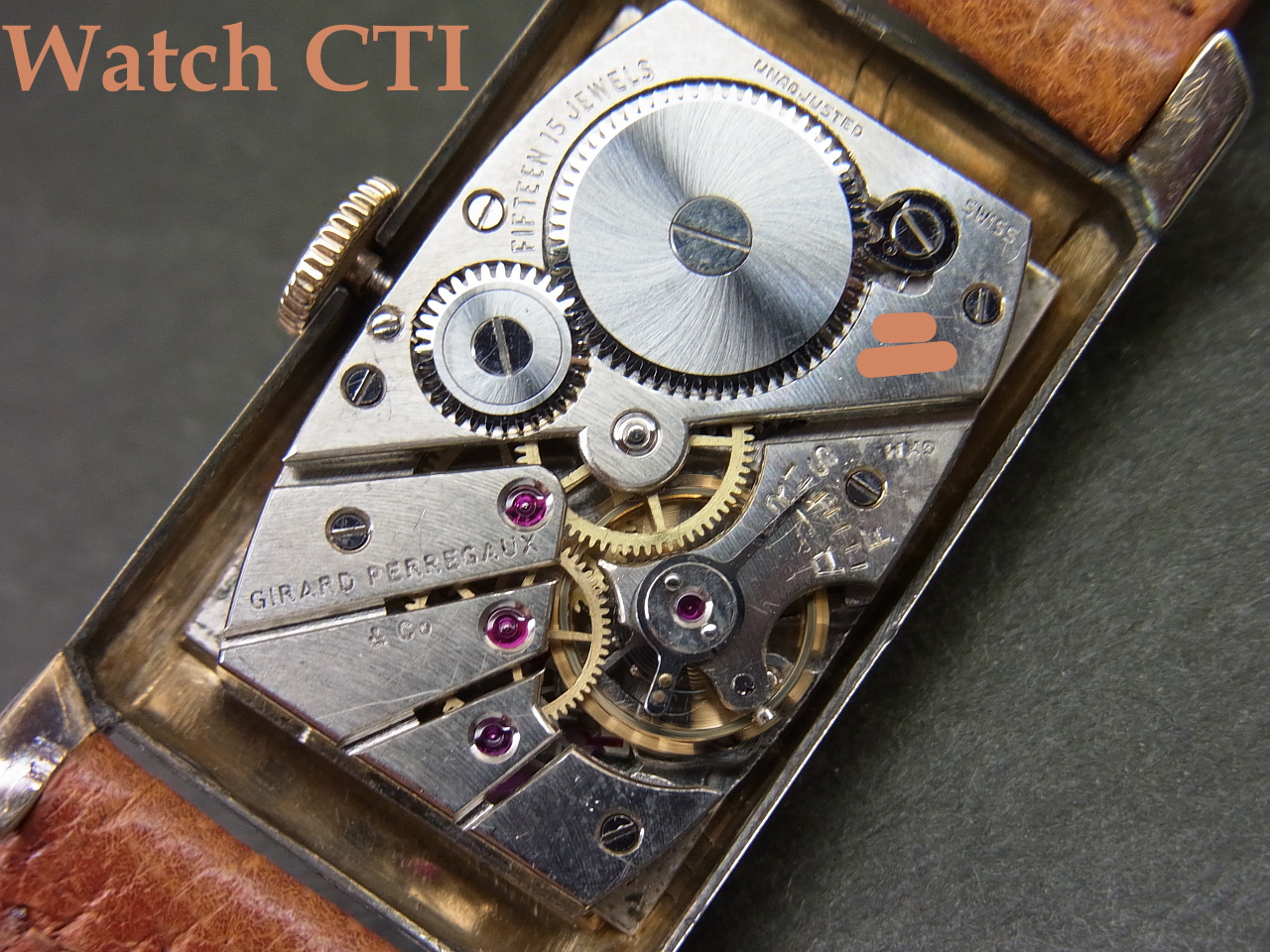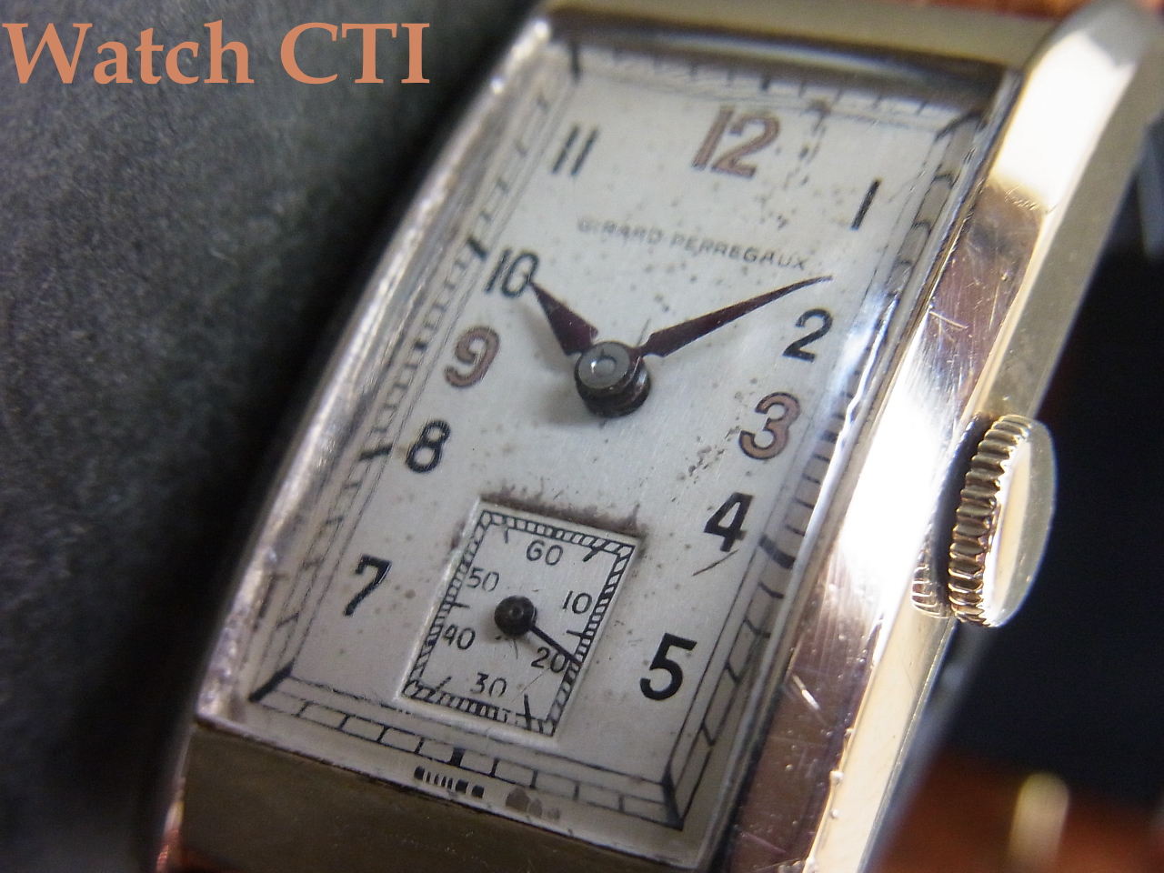 ☆綺麗なシェイプの10金張りレクタンギュラーケースはロンジンのアメリカ仕様にもよく採用されているアメリカンケースメーカーのWadsworth(ワッズワース)社製です。WネームでGP銘は入りませんが機械とダイヤルにはしっかりとGP銘がはいっております。