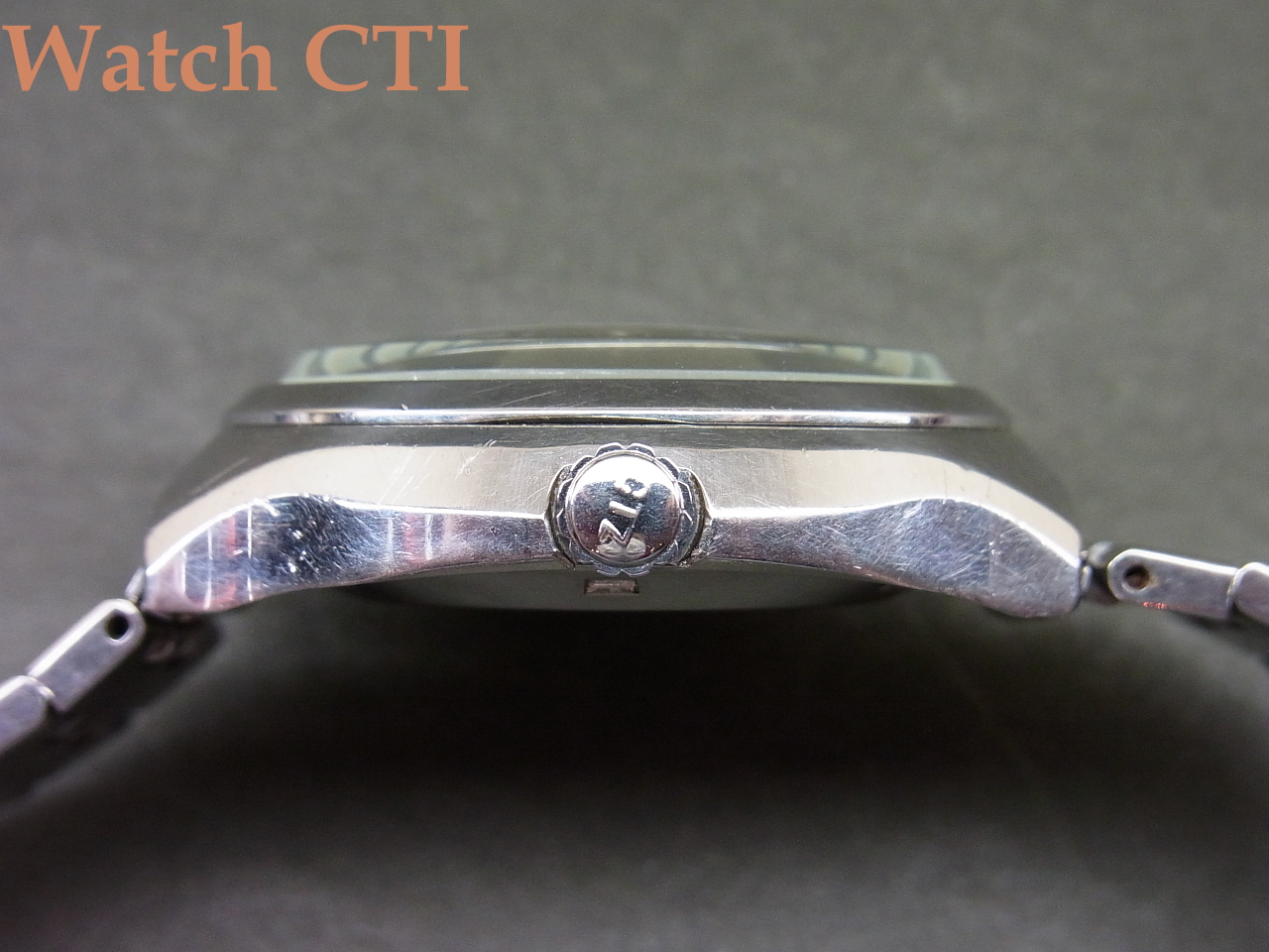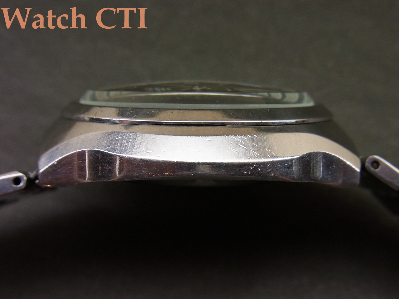 *ご覧の通りかなり70’sサイケ的なデザインで、時代の「先端」を意識し過ぎの感ありありです….その他シチズン10振動はこんな感じのデザインが多く、この点で市場受けが悪かったとしか思えません….もっと端正なモデルをメインに市場投入していればまた結果は違っていたのかなぁ……いずれにしましても、認知度不足やデザインの点で未だ価格は安目に推移しておりますのでねらい目国産10振動ではないでしょうか!!!