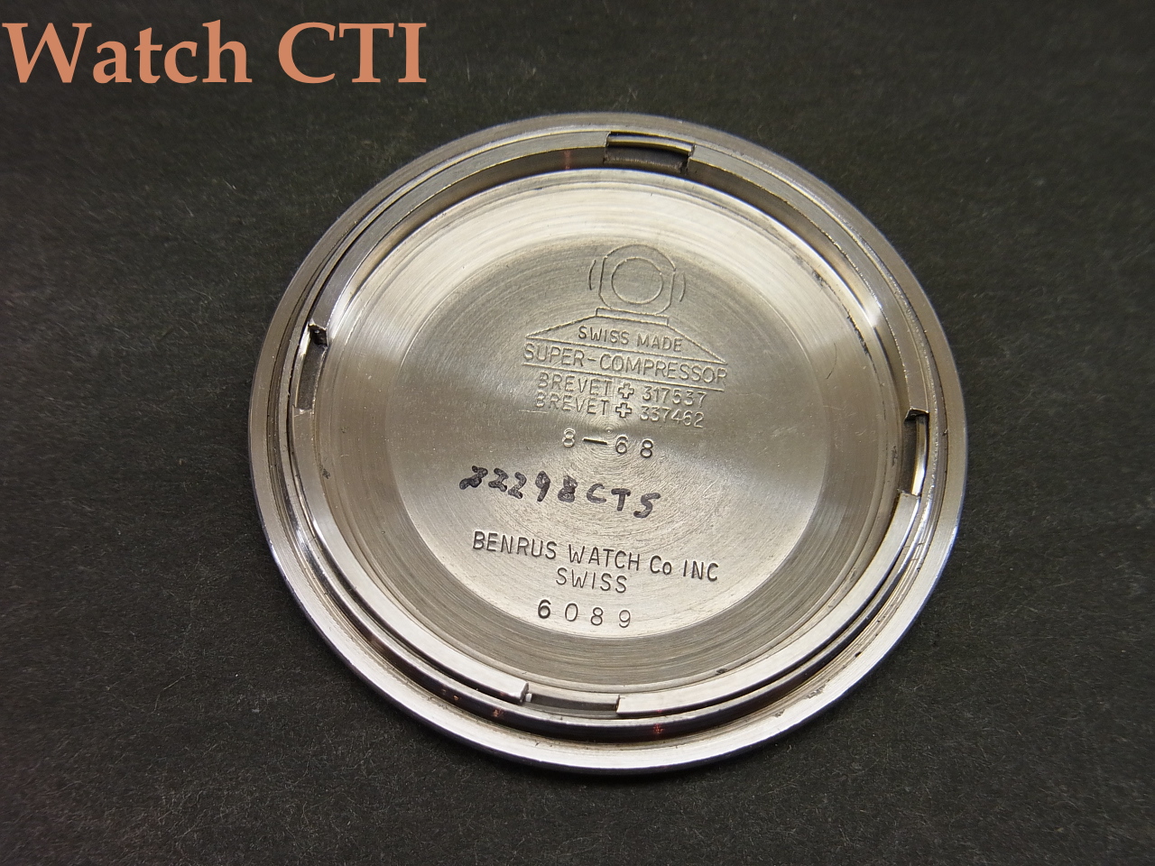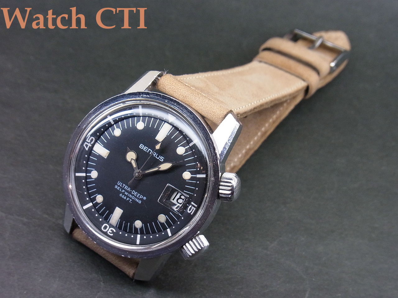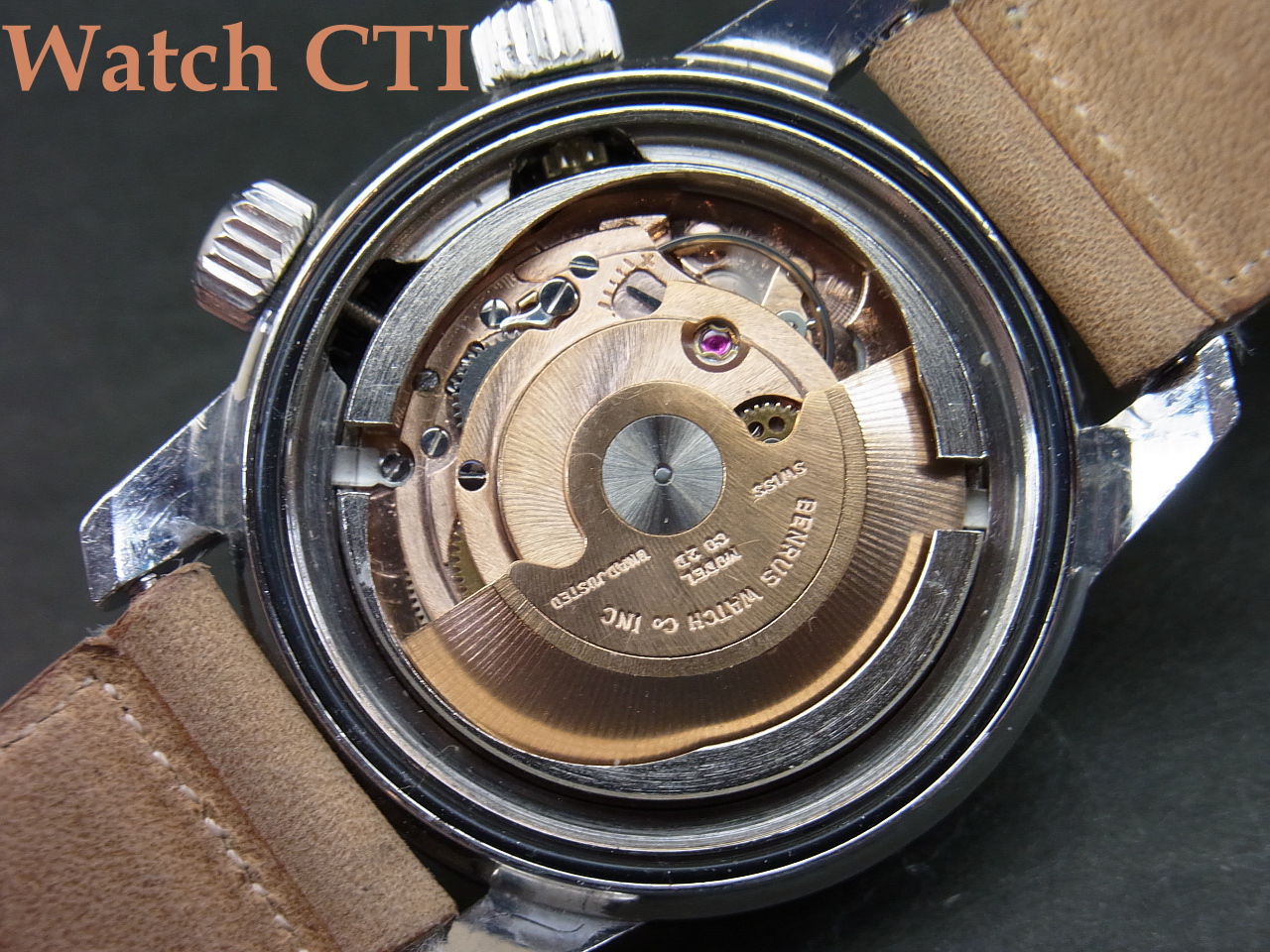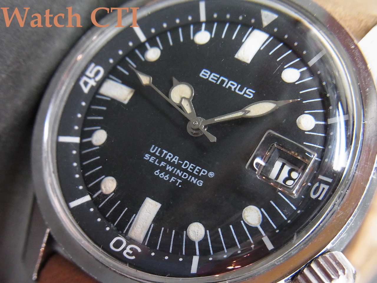 *全体に程度良好なオリジナルコンディションでもちろん外装磨き等入っておりません。ダイアルも綺麗!何となくミリタリーテイストもあり非常に愉しめるダイバーモデルと言えましょう!なお、ケースバックに通常入るBENRUS・ULTRA-DEEPの銘が見られません。何らかの理由で消去されている可能性が高いと思います(ハードポリッシュしたような痕跡はないのですが….)