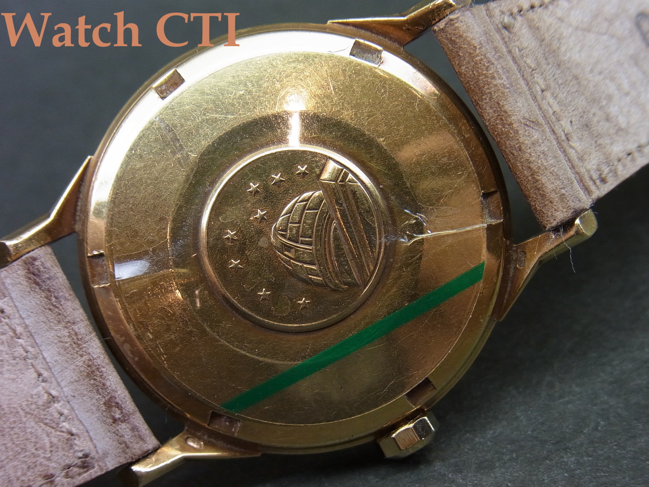 *特徴的な12角ダイアルですが、表面のクリア層に経年が見られ細かなシワがございます。ダイアルカラーがケースと同様にゴールドな為その表面的な経年変化には気づきずらく、通常使用では肉眼でとらえることは出来ないくらいのものです。(ルーペで観察すると判ります)
