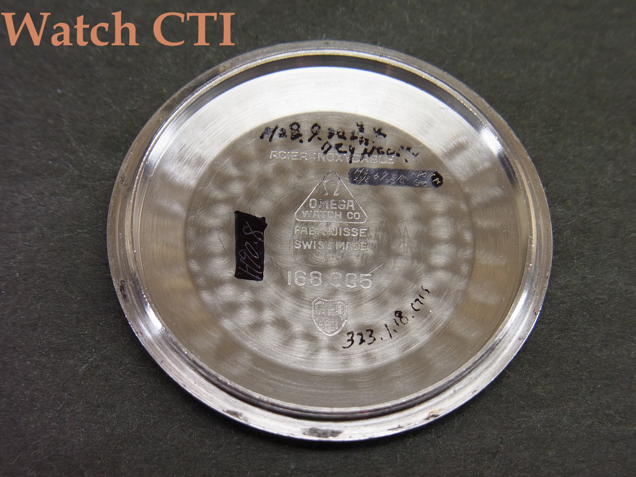 *ケース磨きの無いオリジナルコンディションでダイヤルもオメガによくみられるポツポツとした劣化も僅かしか出ておらずまずまずかと思います。リューズはオメガ純正ですが後年のギザの多いタイプに交換されております。オリジナルではダイヤルの12角とマッチさせたようなカクカクしたデザインのものが付きます(非常に扱いずらいのでギザ付きのこちらの方が実用には良好です)