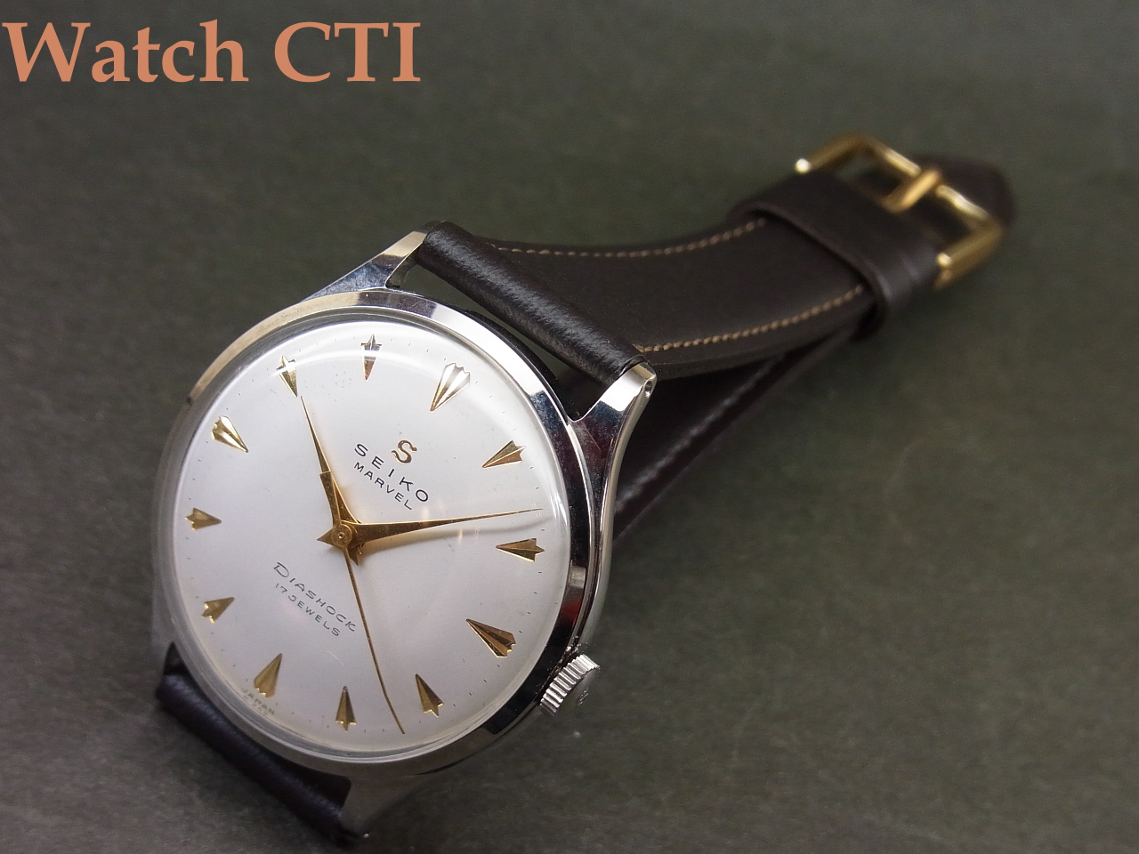 ☆マーベルに最初に搭載された耐震デバイスU型で、1957年半ばには当個体のE-2型にスイッチします。その2タイプの耐震モデルは当初”ANTI-SHCOCK”銘を入れた文字板でしたが、E-2後期にはDIASHOCK銘の文字板でも搭載されております。これは本来の自社製S-1のDIASHOCKが開発された当初には未だ輸入品であるE-2型が在庫として残っていた為に、S-1への以降時期にE-2を搭載して市場に出したものと推察します。その移行時期は1958年夏頃と言われておりますので、E-2耐震でDIASHOCK銘は非常に短期間しか製造されなかったはずですね。