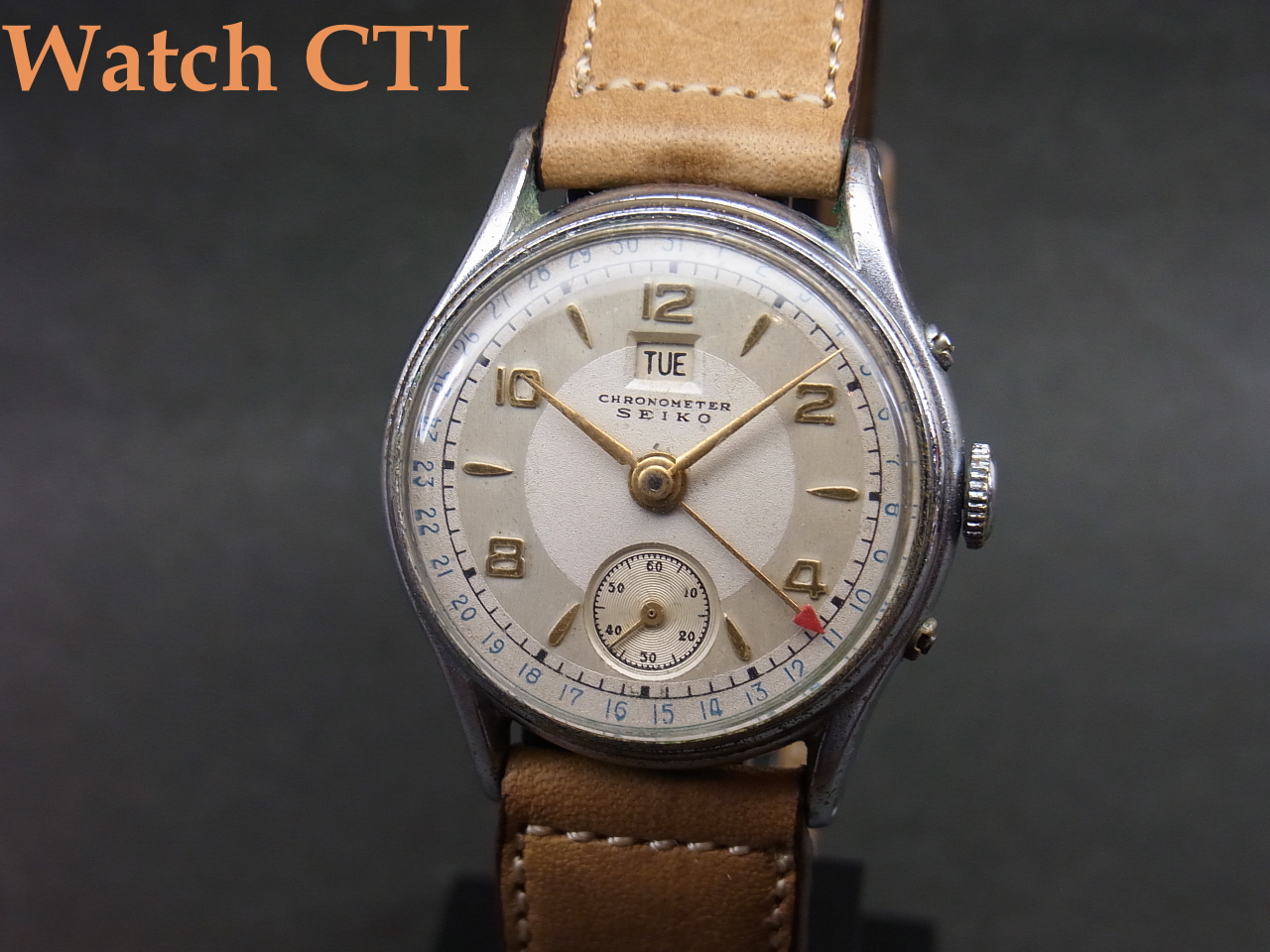*現存数が非常に少なく、出てきても外装・文字板・機械といずれも程度を悪くしている個体が多い傾向ですが、現品は全体にスッキリ纏まっております!!但し、機械に付きましては、現在レベルの精度を期待して実用されることはお勧めできません。当時は新品時点でも1-2分の誤差は当たり前でしたので、現状日差で2-3分以内程度を許容できませんと所有は難しいかと思います。