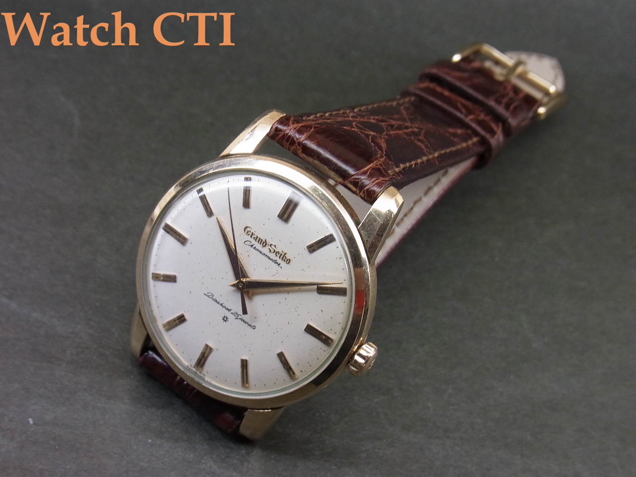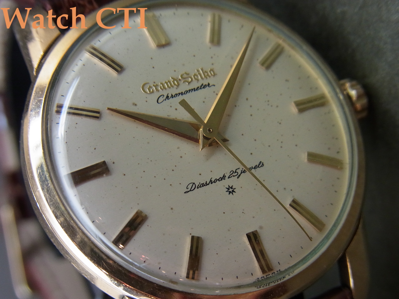 ☆画像からイメージされる文字板の状態、結構プチプチとしたスポット状の経年変化がひどく見えているかもしれませんが、、、肉眼で目視した感じでは画像程協調されて見えません。当社の撮影ではかなり「粗・アラ」が目立つように撮影している為です。