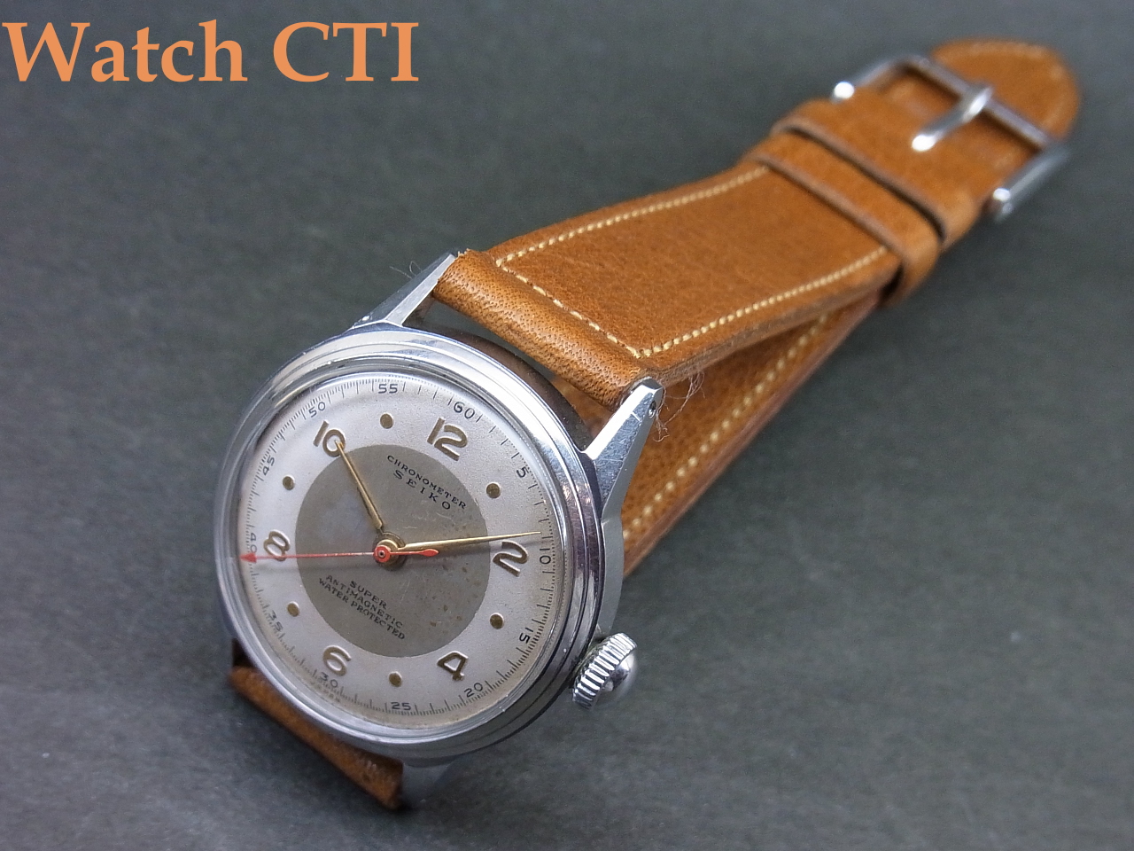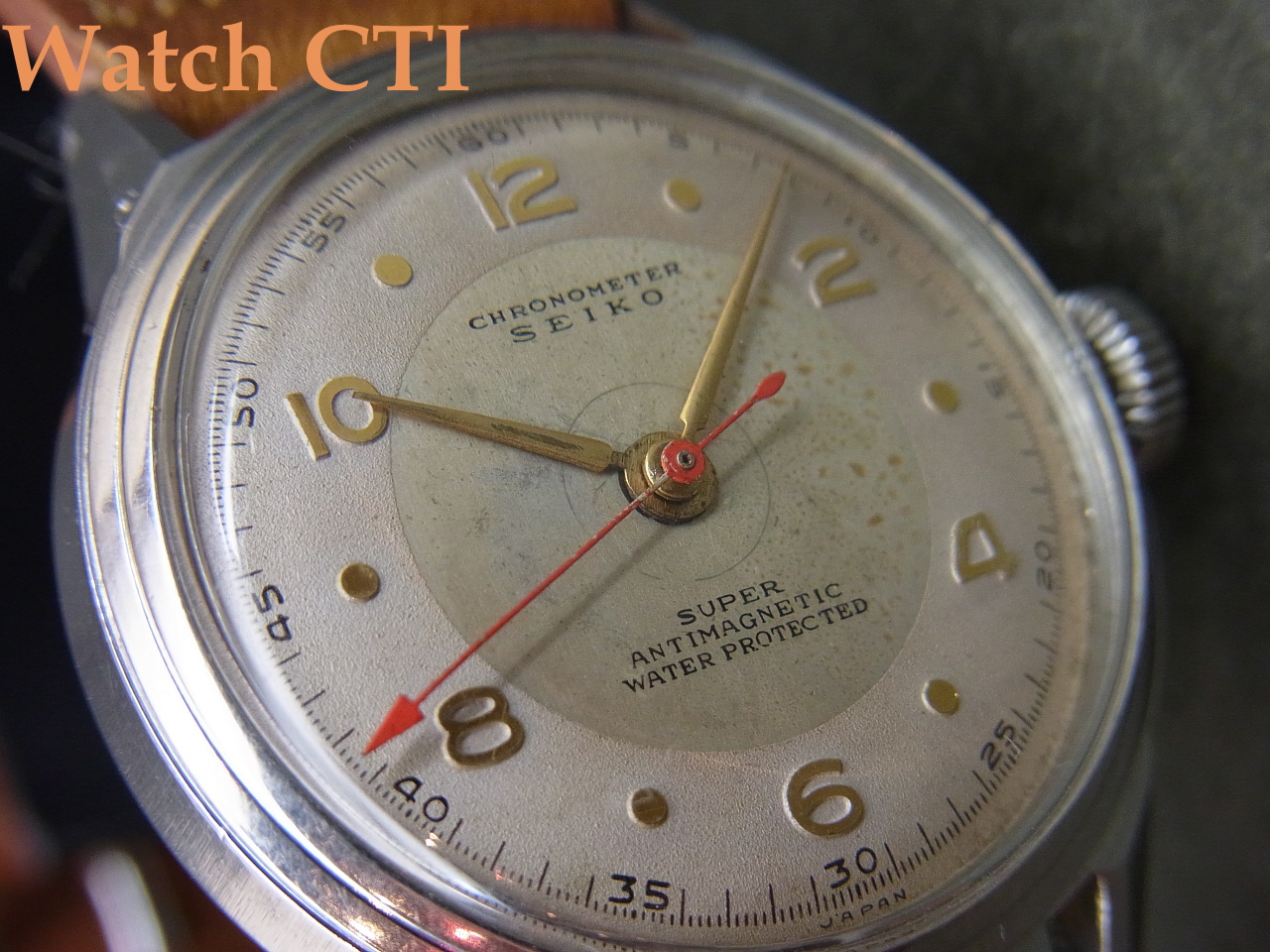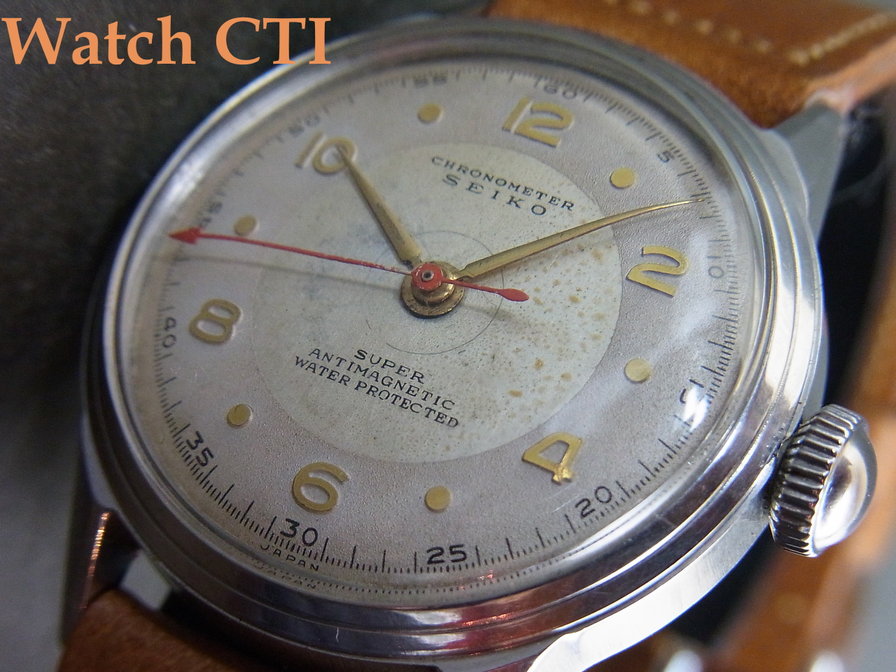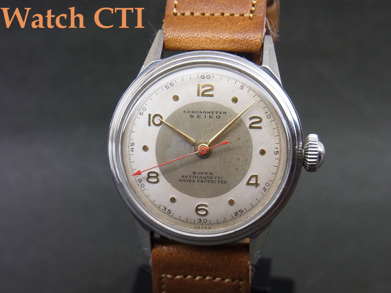 ☆戦後の伸び行く経済にあり、多くの人々が「腕時計」を求める時代となり、使い勝手の良い「防水」機能付きの腕時計の市場投入はメーカーとしても喫緊の課題でありました……こちら、かなりしっかりしたスクリューバックケースを採用しており、結構な需要があったのではないかと推察します….が、「スーパー」の流通量の中では5%にも満たないかもしれません….おそらく製造コストの問題でセールスに直結しなかったのはないでしょうか….