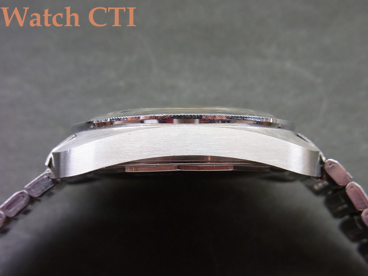 今、ヴィンテージ品としての評価は「使い込まれていない品」という点で高評価が付くのであり、売れ残っていた時計店では棚卸されて以来長い年月を経た厄介者でした…..当然「経年変化」がでています。中には、棚卸後にパーツを取られてドナーになってしまった個体だって出てきます。そういう点でデッドストック品にはエンドユーザーに実用使用された痕跡はなくとも棚卸以降の時計店での現在までの保管状況次第ではユーズド品にも劣る品だって実際にはございます。ただし、私たちが仕入れるのはそんな中でもできる限り優良なオリジナル状態を保っているものを選択してはいるのです。が、ほぼすべての個体で何らかの経年変化痕跡や手を入れた痕跡が見られますので、工場出荷直後の「未使用新品」とは区別してお考え下さい。宜しくお願い致します。