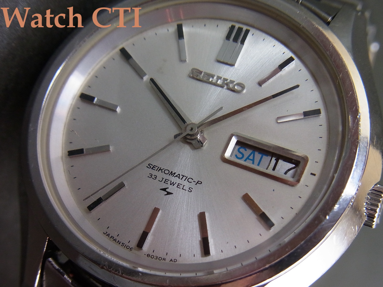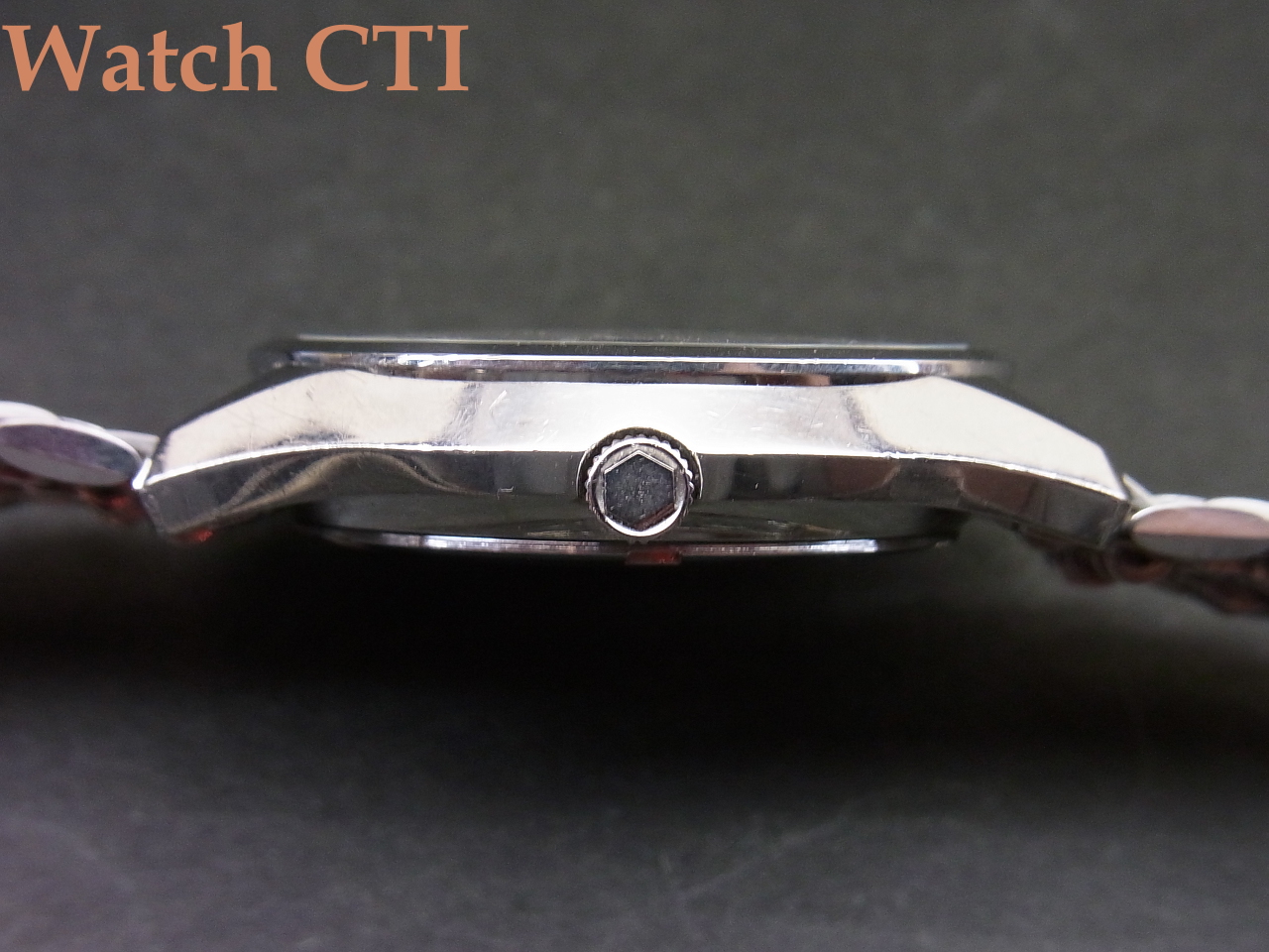 ケース形状デザインや日送り構造(リューズ中央に埋め込んだプッシャーで送る)など、見るべきものが多く、、、、、個人的にとても好きな個体です(笑)
