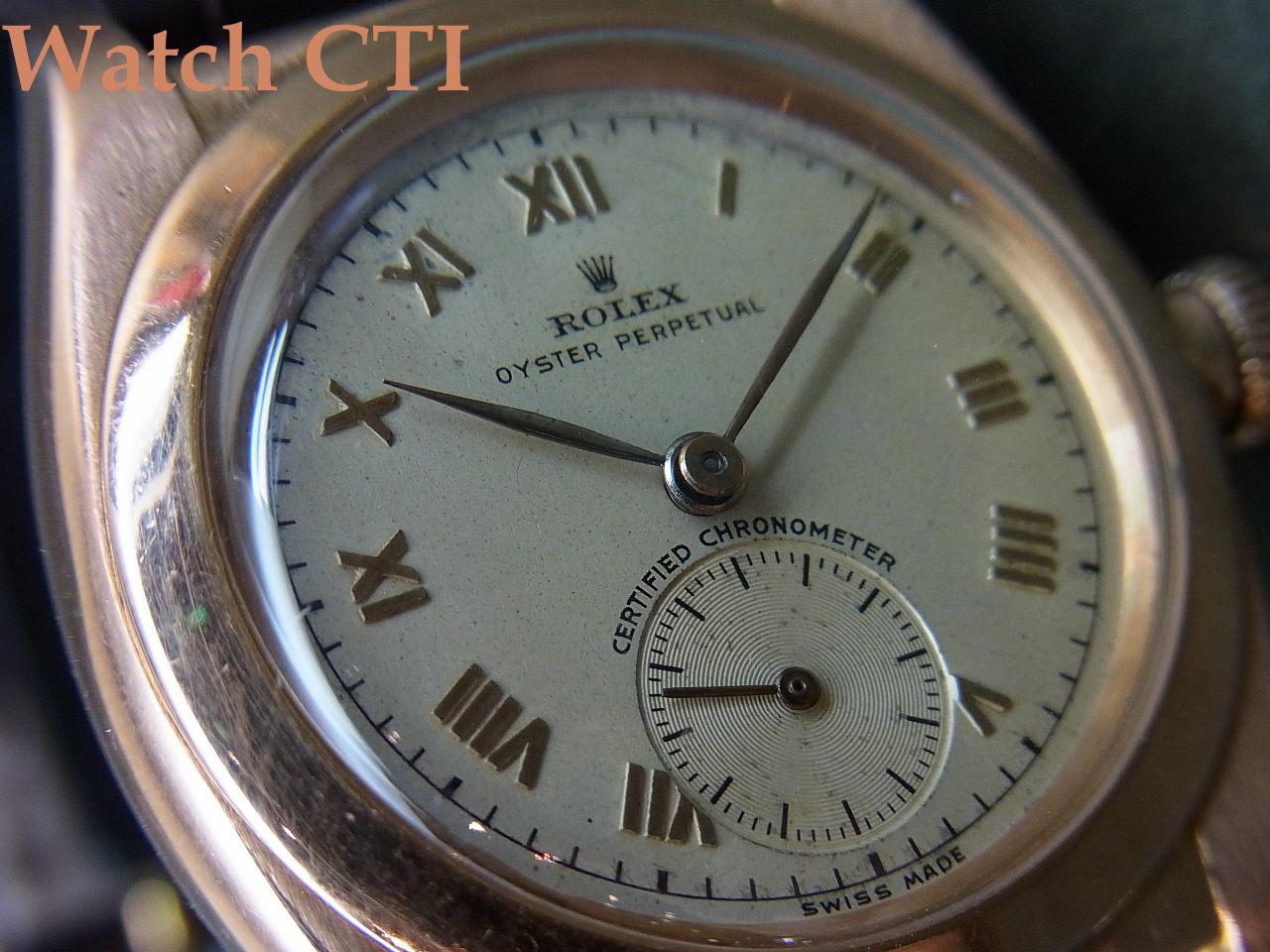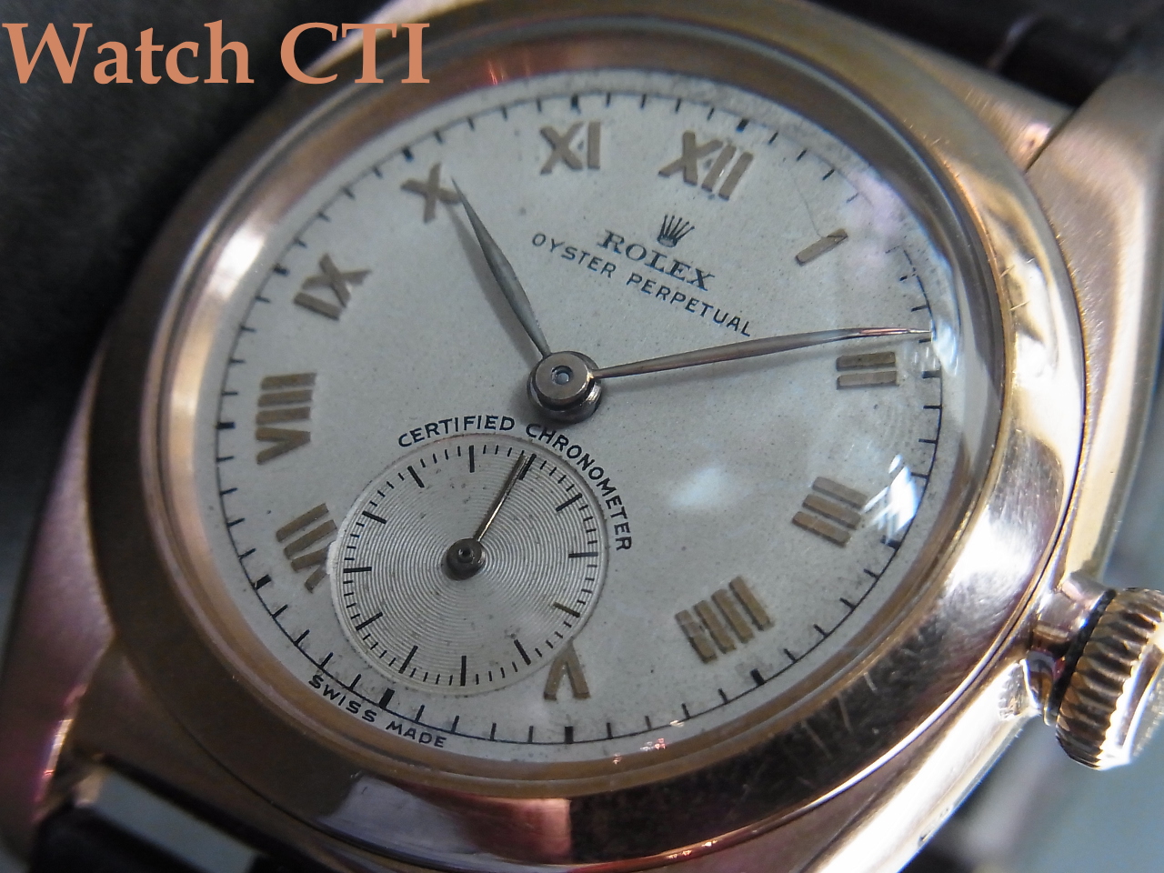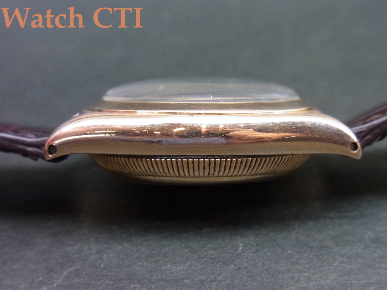 ..が、この個体!!結構良いですね~全体にそれなりに使い込まれてはおりますが、ケース厚もしっかりありますし大きくバランスを崩す箇所がございません!何より、ケース素材の18金ピンク(ローズ)の色合いが何ともヴィンテージ!!そしてスモセコにアプライド(エッチングです)のちびローマンという中々出会えないダイアルです!