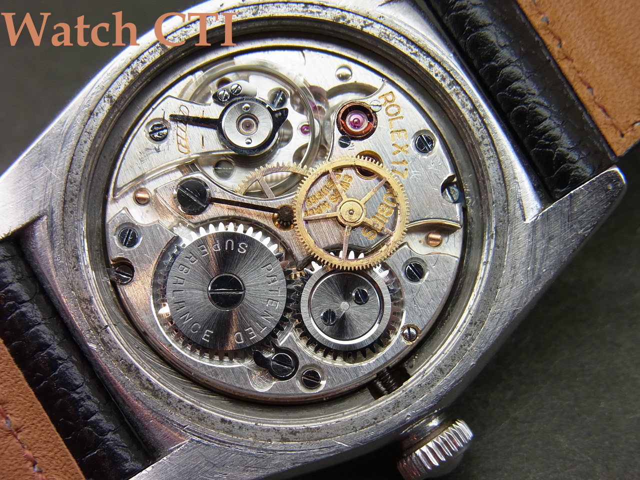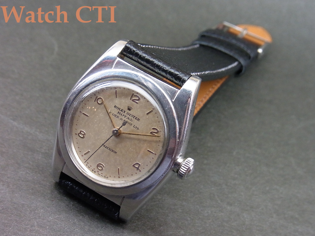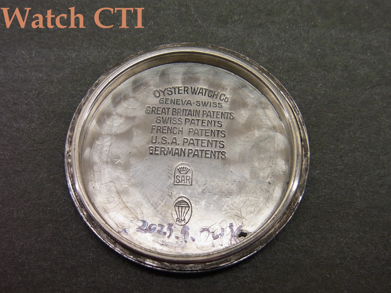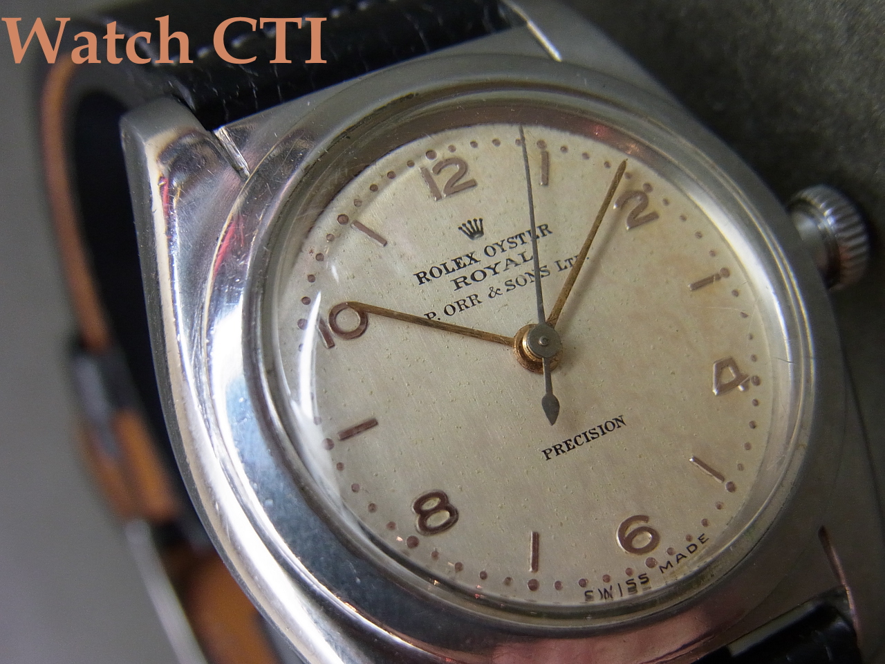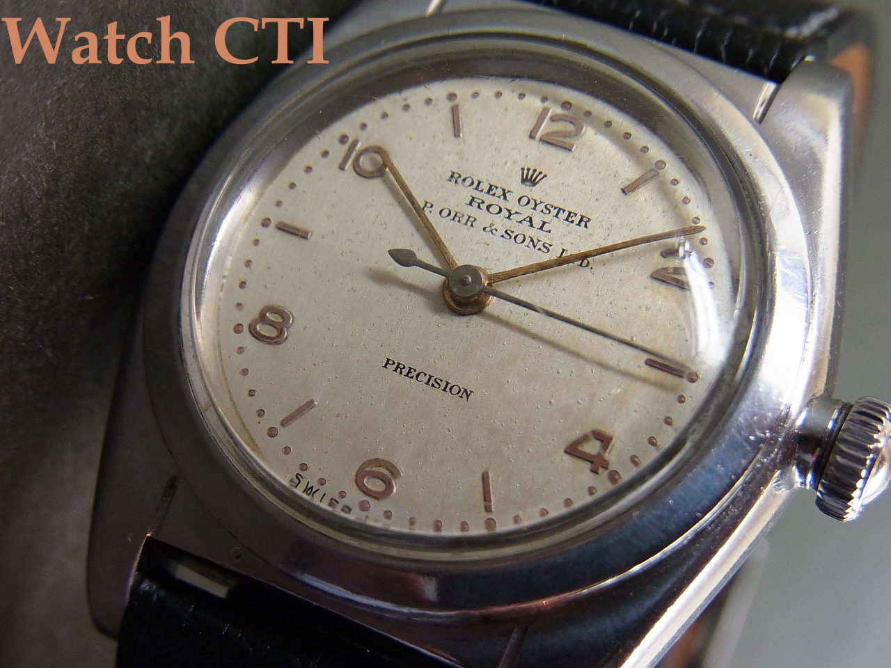 *この辺のヴァリエーション違いは、今回のインド・マドラスの有力時計店P.ORR&SONSの別注であったという点が絡んでいる可能性が高いと思います。今回のWネーム表記銘書体のダイヤルへの乗り具合を見ると、ROLEX OYSTERの銘と全く同一のインク素材と書体で入っており、明らかにロレックスの製造過程で入れられたWネームと判断できるため、通常ラインのフラットバックとは異なって仕様だったのではないかと推察します。