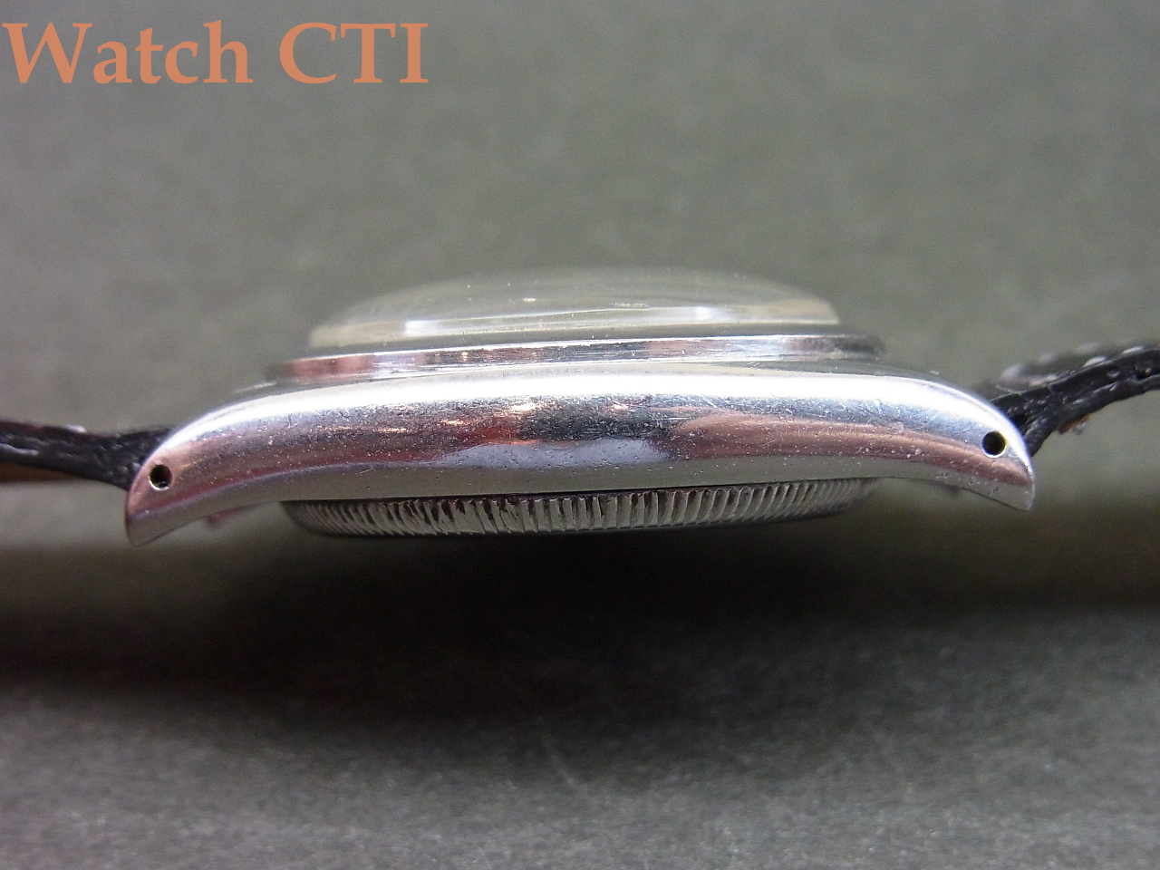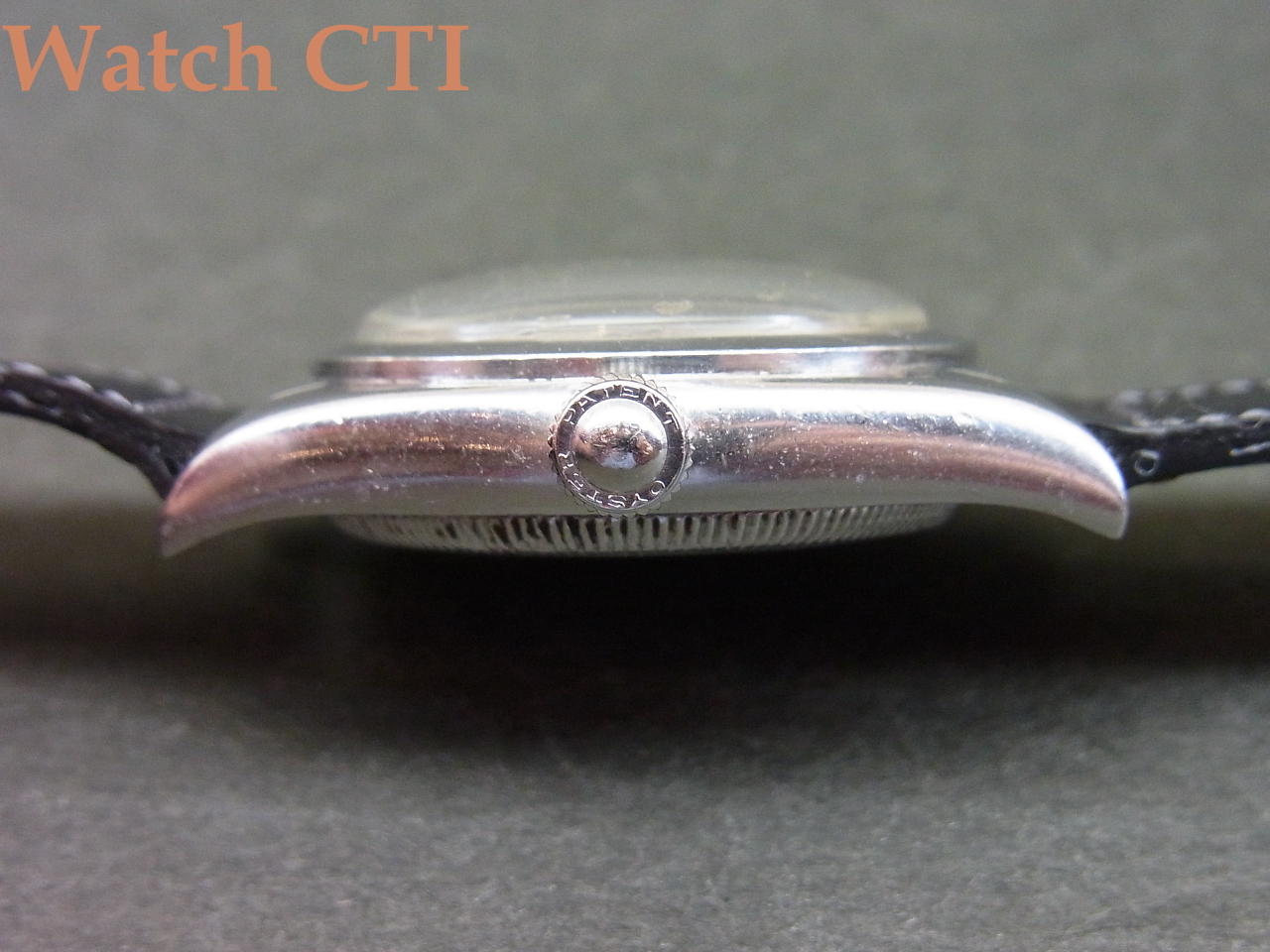 こちらの個体もREF.無しです。そして、シリアル番号は当時よく見られる「再使用番号」でしょう。(通常の製造年研究データに照合すると1935年あたりになってしまいますので…)また、リューズも2765フラットバックはいわゆるデカリューズが付いているのですが、当モデルは40年代初頭に多く使われていたデベソタイプのものとなっております。