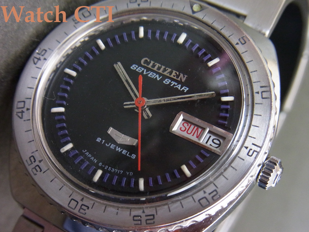 通常のビジネス系モデルのセブンスターにスポーティな味付けで、本格的にアウターベゼルまでつけて(しまって)仕上げました(笑)…..