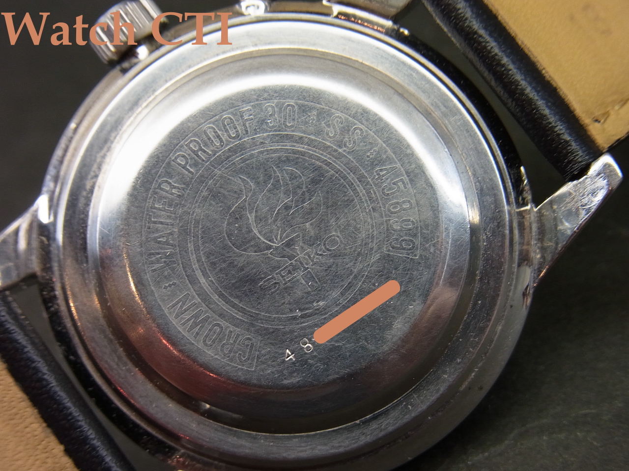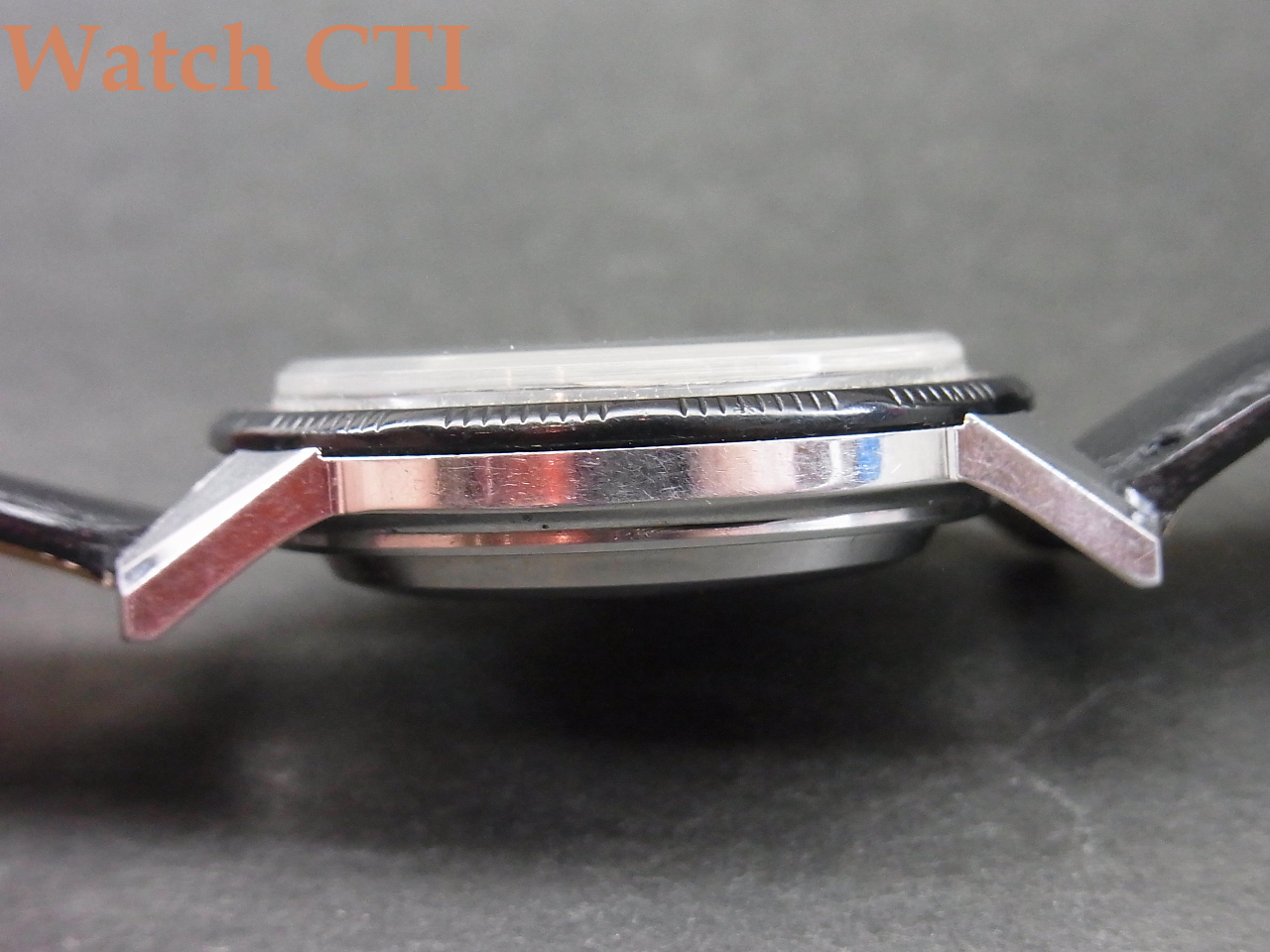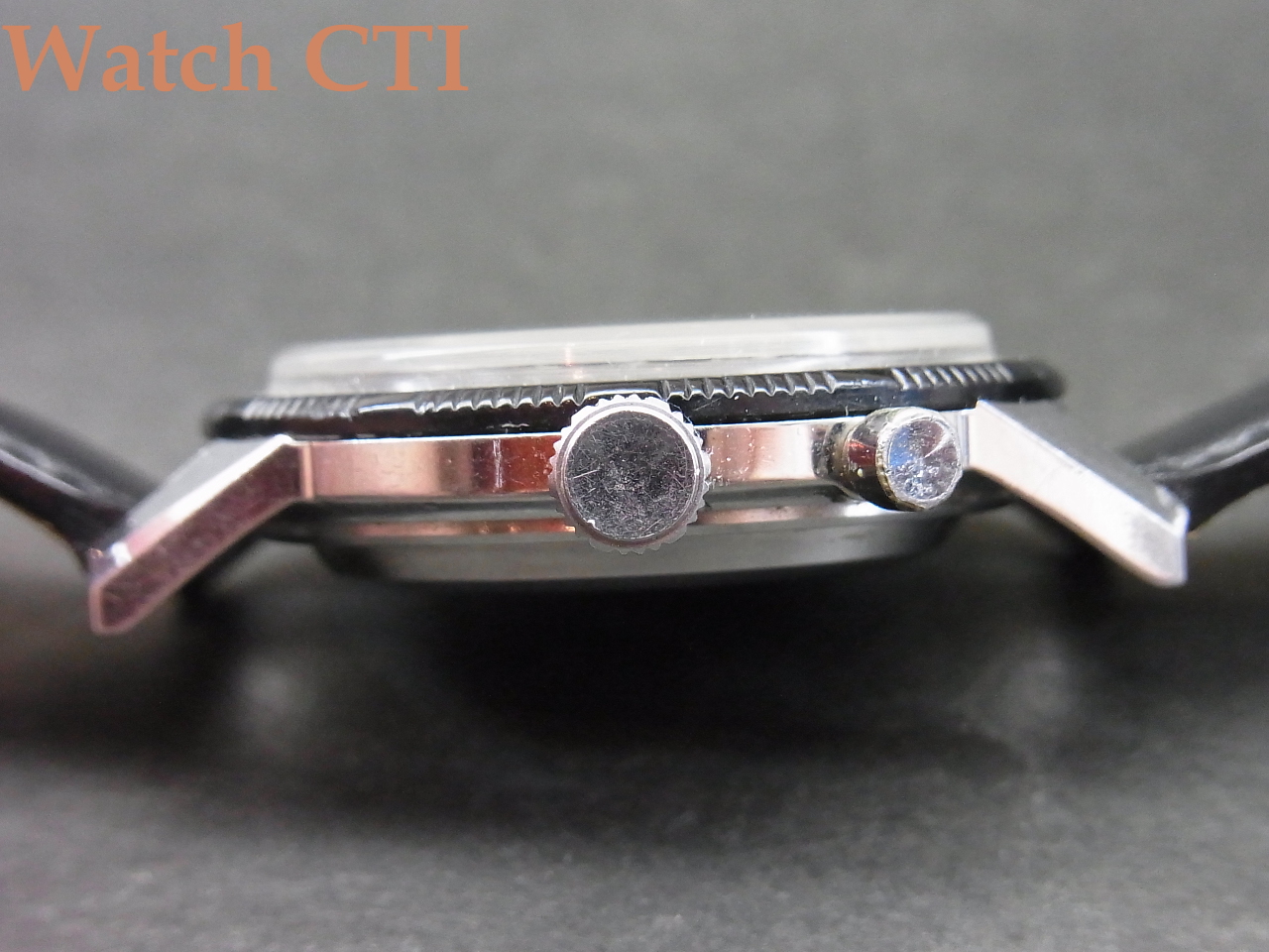現在のところ時計部及びクロノグラフ部の作動に問題はございませんが、プッシャーを押し込んで戻る際の戻りが悪く、つまんで引き出さないと戻らない場合が多いです。分解してプッシャー内部清掃で復帰するとは思いますが、前回のメンテナンス履歴も不明ですので、使用するならOHするべきでしょう。