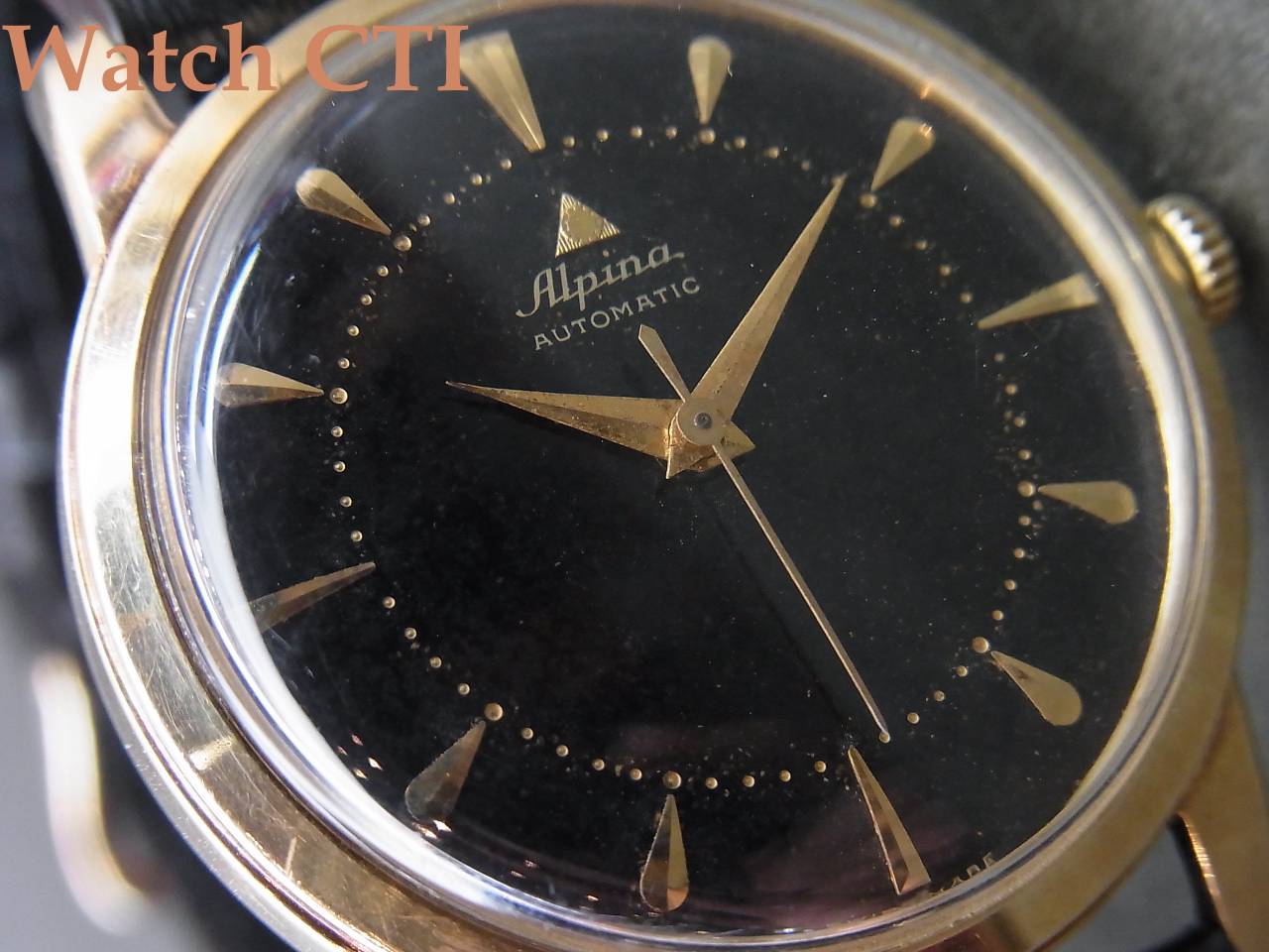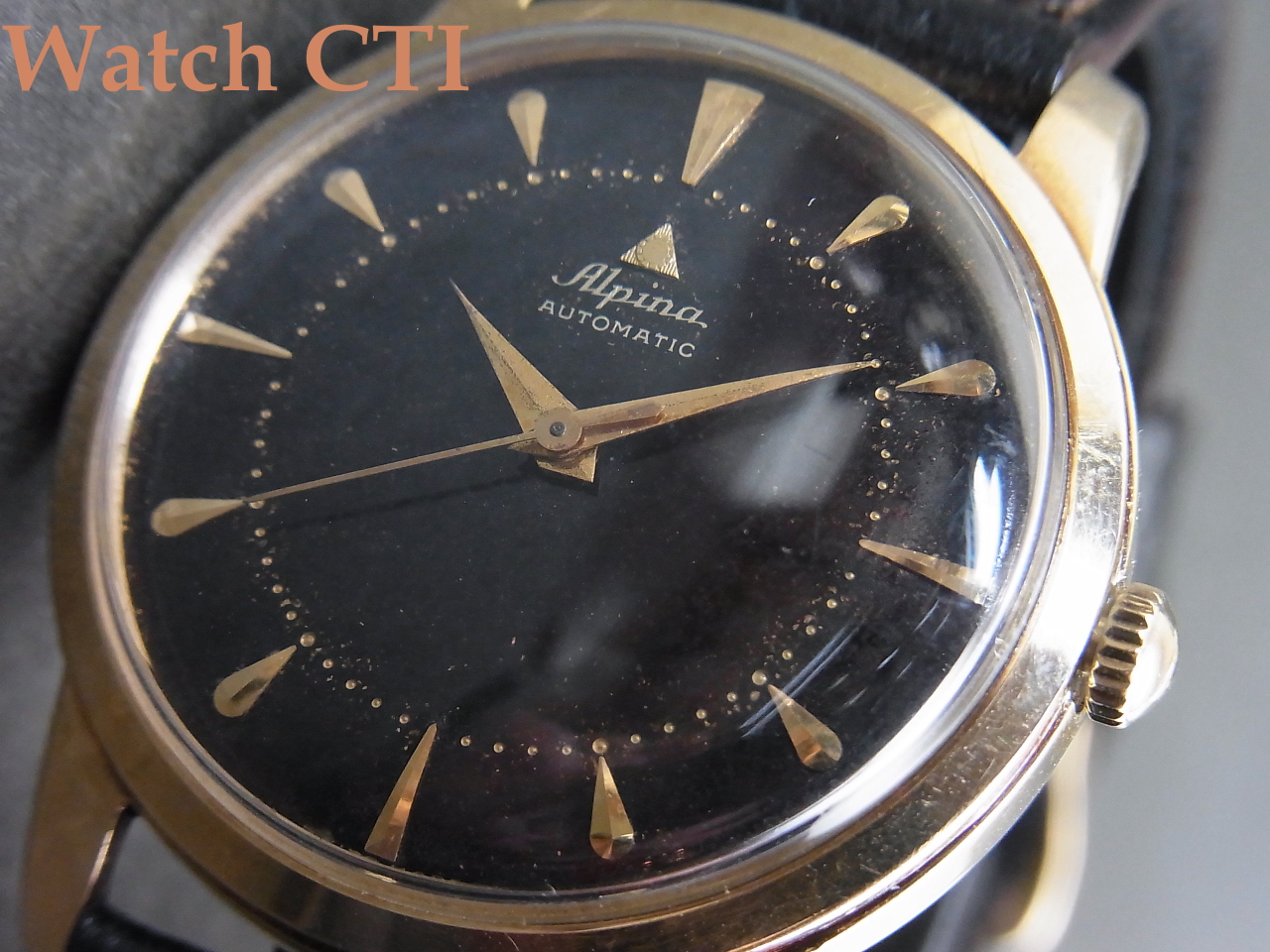 *ブラックギルトダイヤルも自然な経年変化は出てきておりますが状態良く12時下のトライアングルアルピナマークが目を引きます!