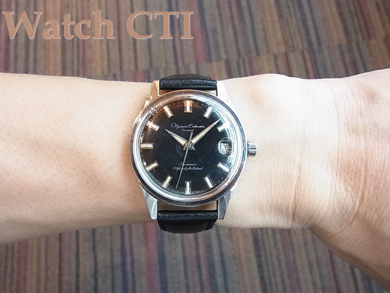 やっぱり黒も文字板はピシッとしまるのですね。そしてインデックスと時分針にはたっぷり夜光が仕込まれておおります(もう光りませんが)この夜光が古く経年変化した、あの独特の色合いってこれがアンティークテイストを醸し出すためにはとっても重要であることに異論のある方はないかと思います………。現品も入れ替えなしの発売時点のオリジナル夜光が経年変化したものです!