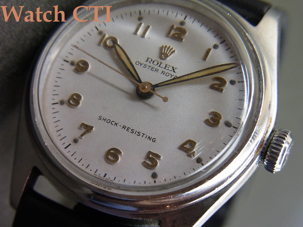 *さて、40年代も最後期を迎えたオイスターケース、市場からのそれまでのサイズでは視認性がイマイチだ!との声に応えていよいよ「ケース大型化作戦」が開始される時を迎えておりました!こちらのケースREF番号4444は、迎える50年代に大型化されていくオイスターケースの萌芽がが見て取れます!