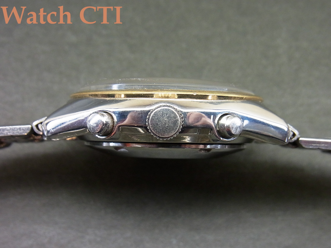 また、金メッキベゼル仕様ですとケースバックは通常”SGP BEZEL STAINLESS STEEL BACK”と刻印されているはずですが、現品はSTAINLESS STEELの刻印のみですのでオールスチールの8020ケースのバックに替わっているかもしれません….?が、そのケースはバックもミドルもポリッシュが入っており仕上げ感や使い込まれた感は同一です….金メッキベゼルは経年で一部剥離ありです。