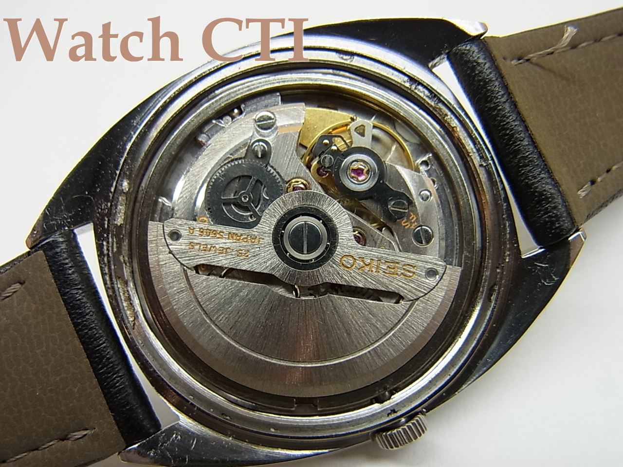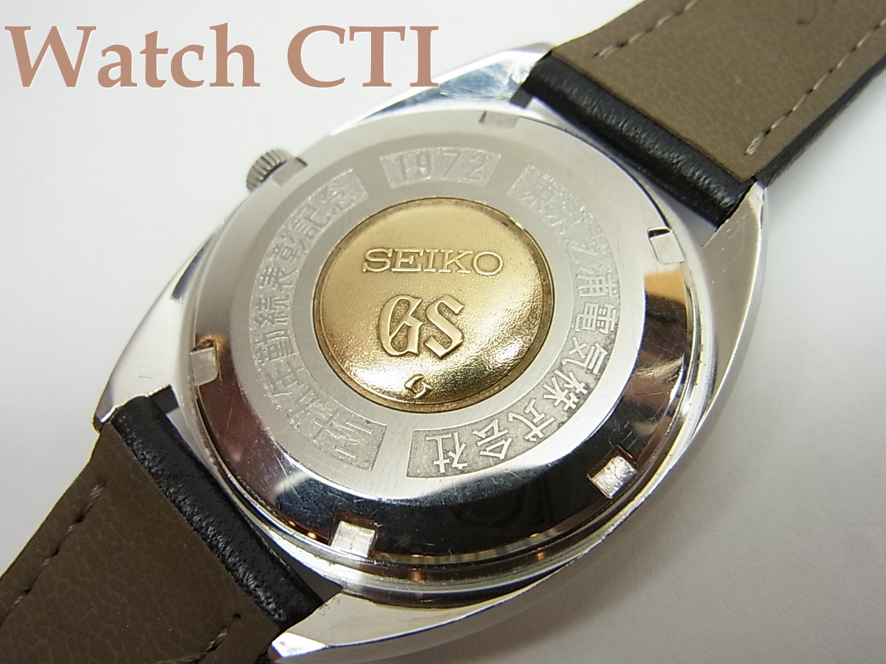 さて、この現品ですが、ケースバックにはメダリオンを取り巻く献辞が一周刻まれており、これは販売後に刻印加工したものではなく、セイコーが別注をうけてこの状態で発注先である「東芝」に納品したものとなります。東芝はさすがは大手企業とあって、この56GS以外にも45GSの別注品も出てきますので、当時勤続25周年を迎えた社員の方々は素晴らしい記念品を受け取っていたのだなあと関心致します。。。。。昨今は原発やら白熱灯・TVやらで苦戦しているようですが、このような素晴らしい国産腕時計を永年勤続した貢献社員に送っていた企業であったなんて素晴らしいですね!