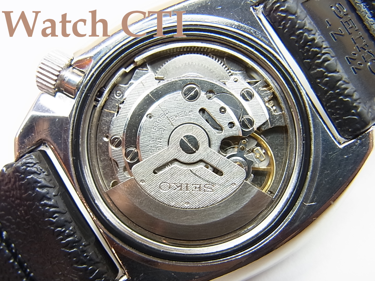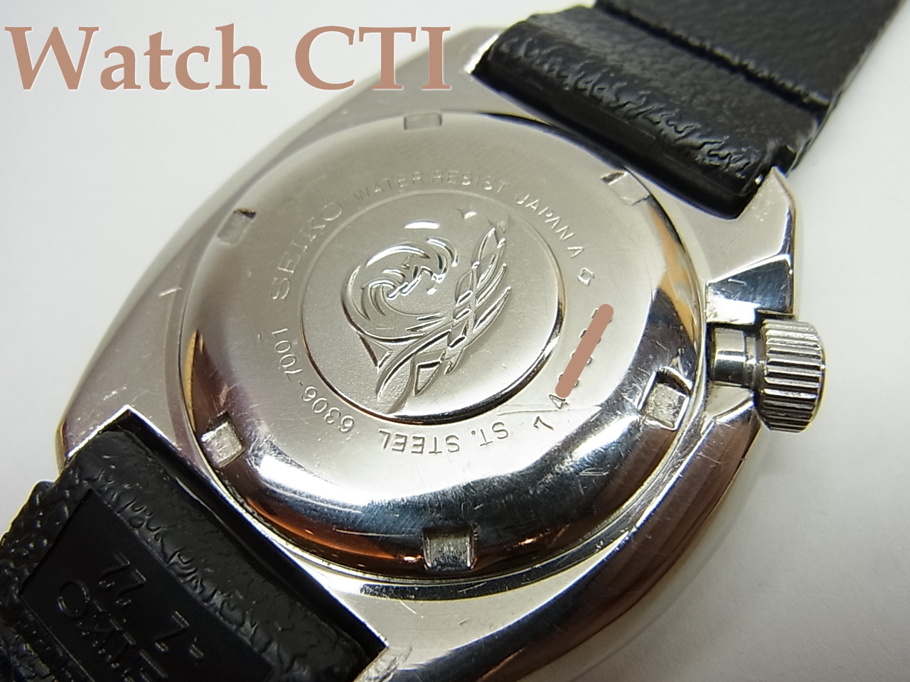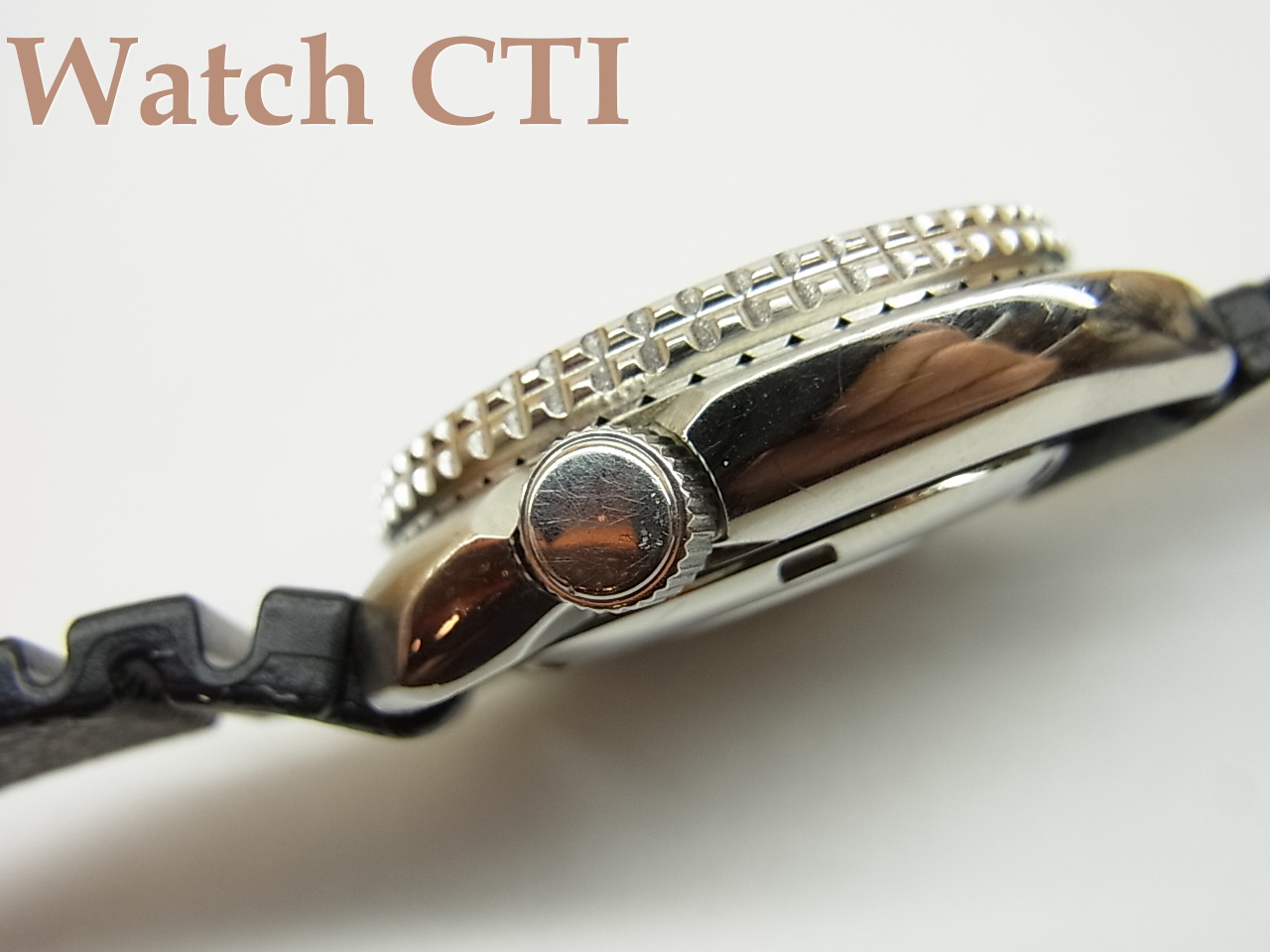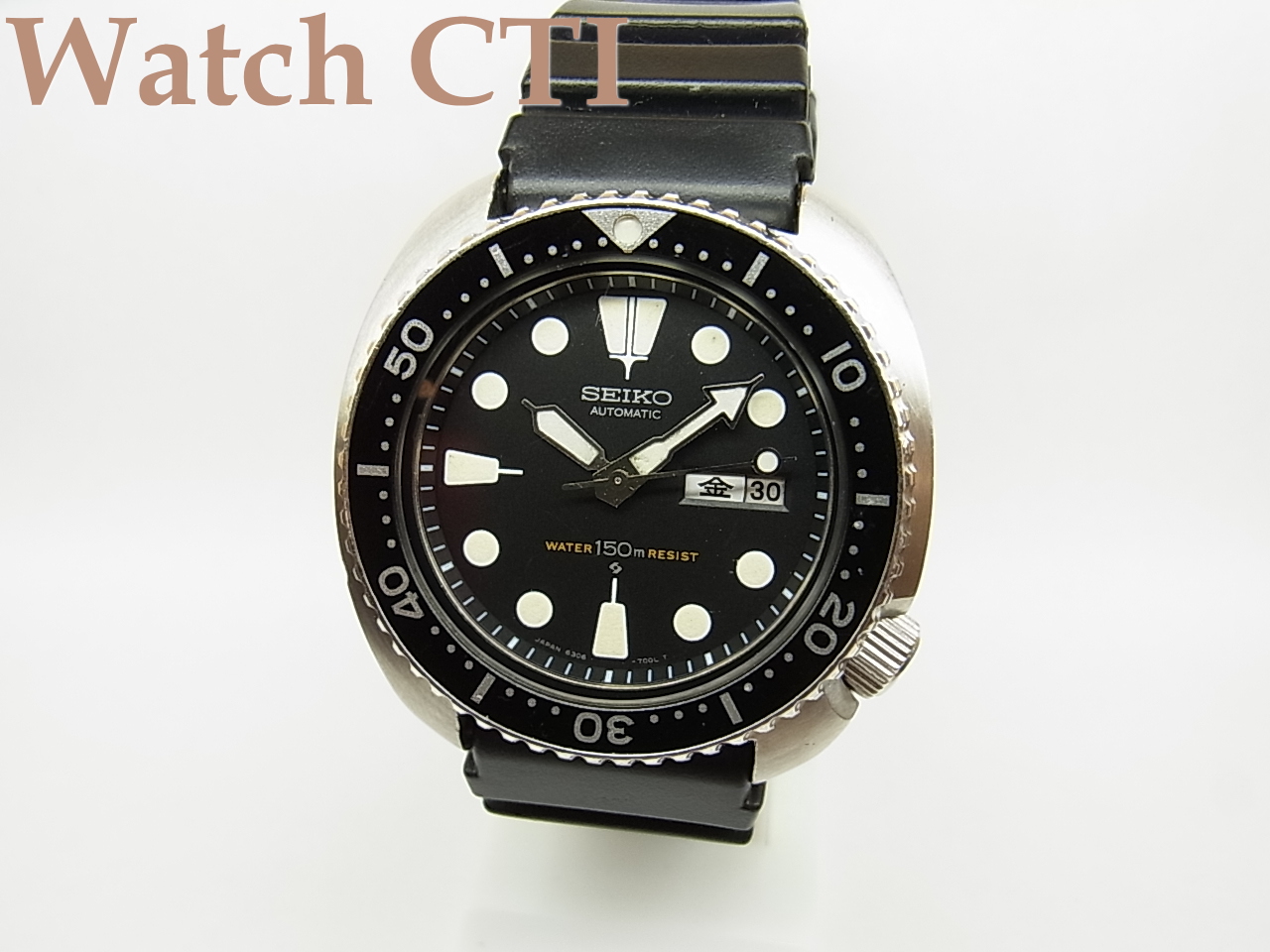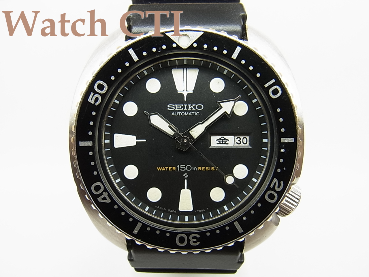 ベゼルディスク・風防ガラス・リューズ・ケース・文字板。長短針・秒針とどれもが発売当時のパーツのままです。